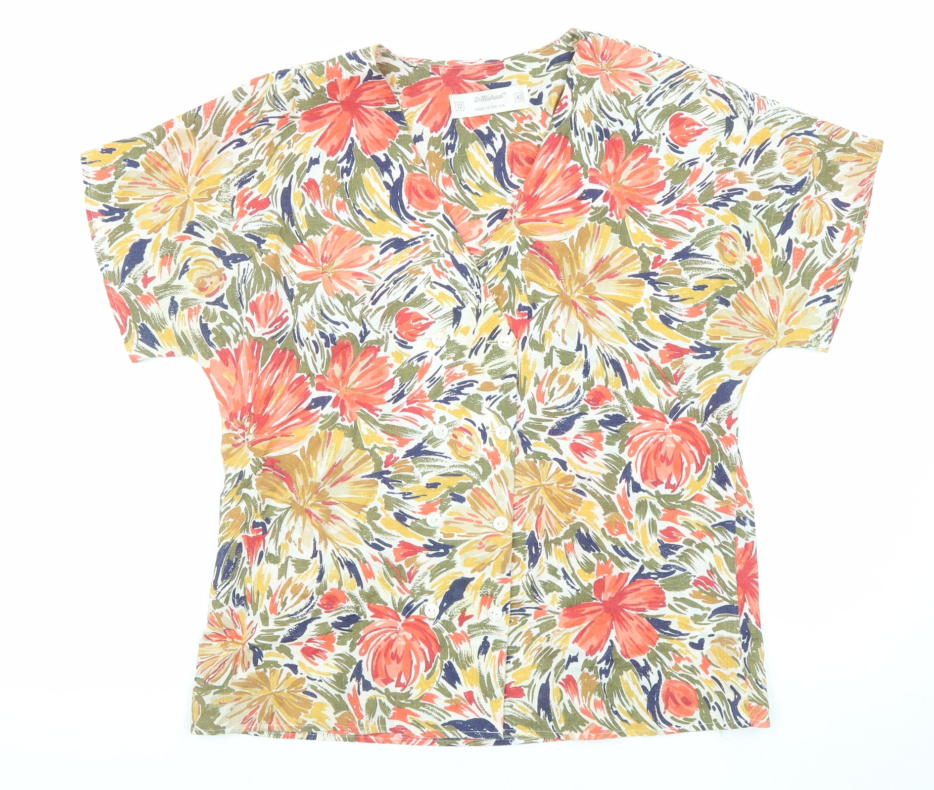 Womens Multicoloured Floral Polyester Basic Blouse Size 12 Scoop Neck