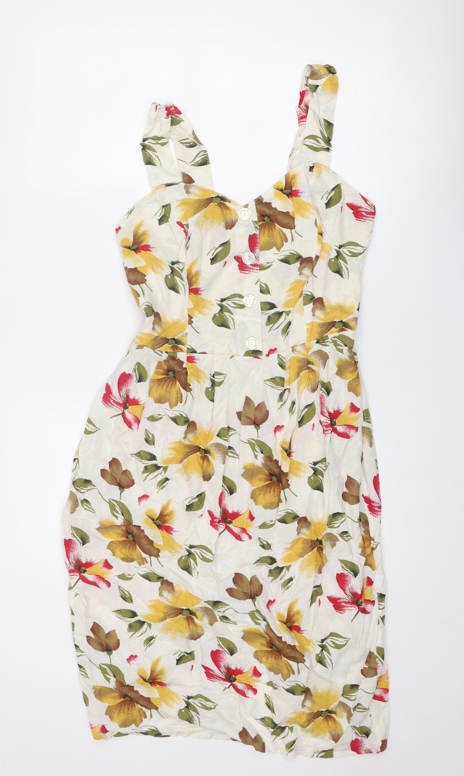 Womens Multicoloured Floral Viscose Slip Dress Size 14 V-Neck Pullover