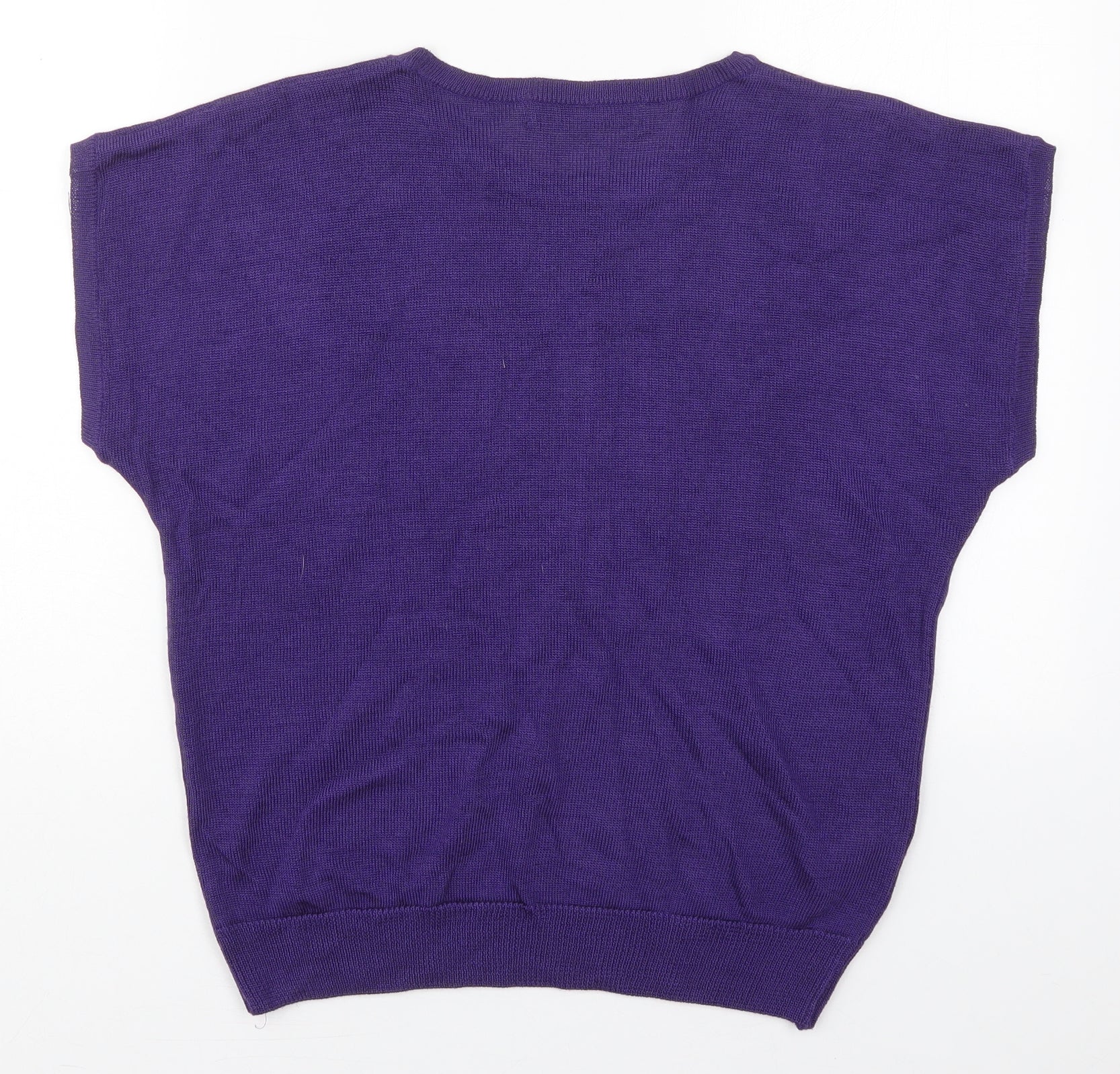 Womens Purple Crew Neck Acrylic Pullover Jumper Size 12