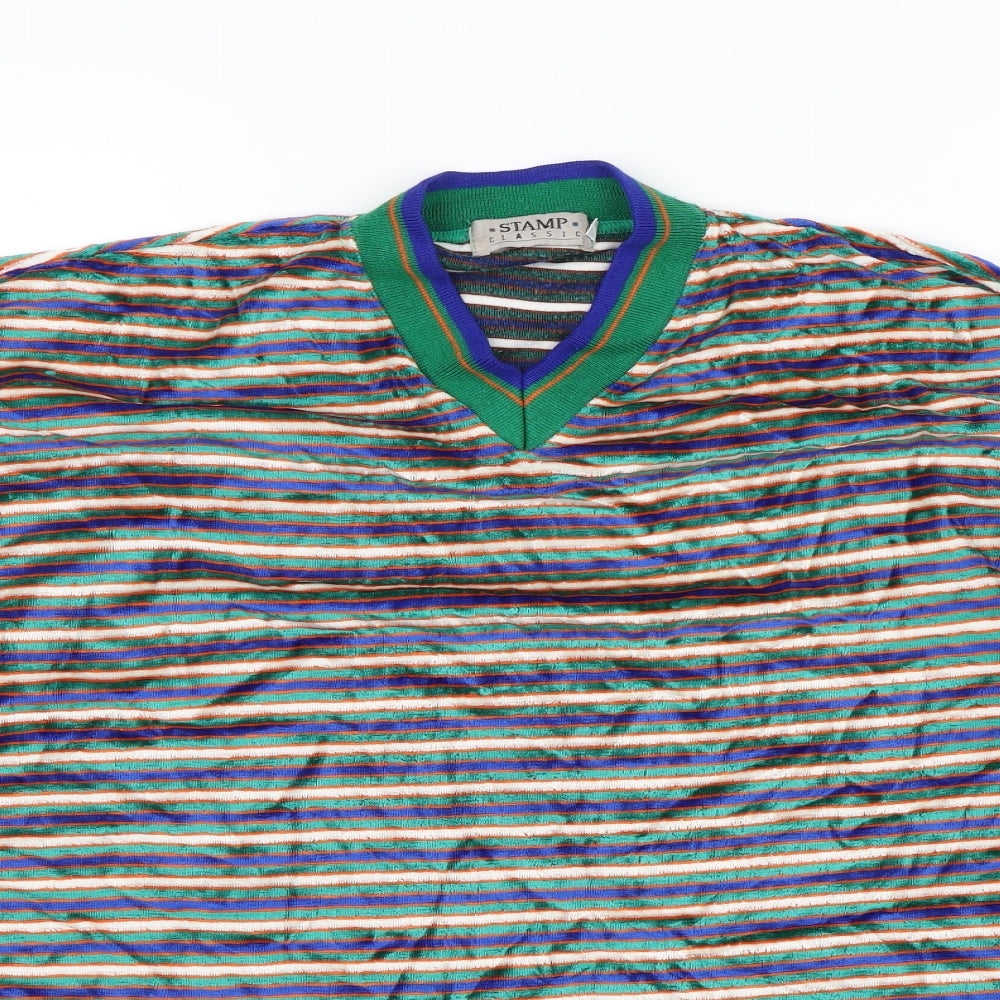 Mens Multicoloured Striped Velvet Pullover Jumper Size M