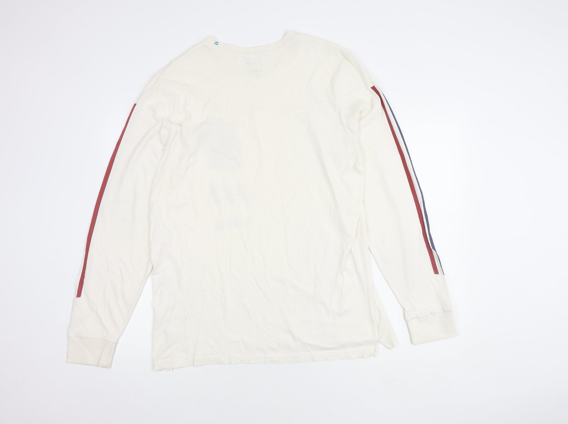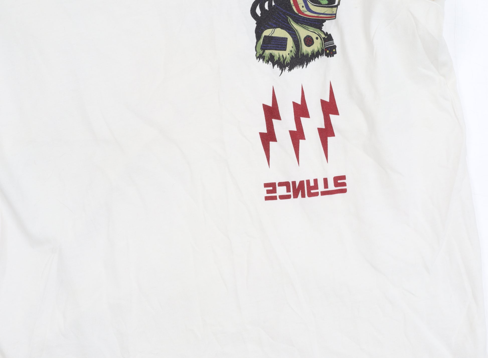 Step up your casual wardrobe with this stylish Stance Men's T-shirt. Designed for everyday comfort, this T-shirt is crafted from 100% cotton, ensuring a soft and breathable wear. The clean white colour complements any outfit, making it a versatile addition to your collection. With a classic long sleeve design, it’s perfect for layering or wearing alone during the cooler months. Featuring a unique graphic on the front, this T-shirt adds a touch of personality and style to any ensemble. The crew neck neckline provides a comfortable fit, while the relaxed yet modern look ensures you'll stay on-trend. Ideal for all seasons, it transitions effortlessly from casual outings to more relaxed settings. Despite being slightly worn, this T-shirt remains in excellent condition. Grab it now to enjoy both style and comfort from one of your favourite brands. Don’t miss out on adding this essential piece to your rotation.