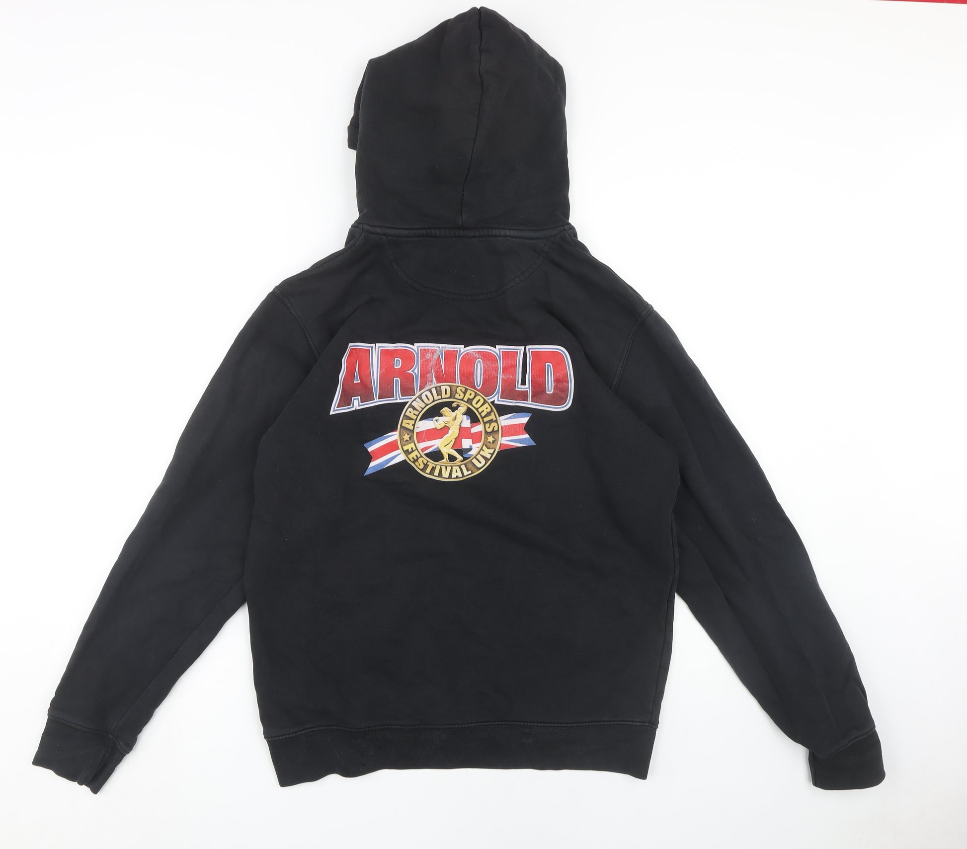 Elevate your casual wardrobe with this sporty black hoodie from Stanley/Stella, perfect for both men and unisex adults who enjoy staying in style. Available in a comfortable M size, this pullover hoodie combines organic cotton and recycled polyester, making it not only a sustainable choice but also incredibly comfortable to wear. The hoodie features a striking logo accent, representing the Arnold Sports Festival, ideal for sports enthusiasts or those wanting to make a statement with their casual wear. Designed with a practical drawstring closure and a cozy hood, it promises to keep you warm during chilly autumn and winter days. Its long sleeves and crew neck design add to the overall comfort and ease of wear, making it a perfect choice for layering. The graphic print adds a touch of uniqueness and flair, setting you apart from the rest while ensuring you stay stylish and practical. Whether heading to a festival, gym, or a casual day out, this hoodie fits beautifully in various settings, making it a versatile addition to your wardrobe. Machine washable and crafted for regular use, it is easy to maintain, promising durability and a fresh look each time you wear it. Given its sustainable materials and excellent condition, this hoodie is a bargain at £35.00, reflecting its quality and unique appeal. Upgrade your wardrobe by adding this stylish piece, offering not just comfort and versatility, but also a nod to sustainable fashion choices.