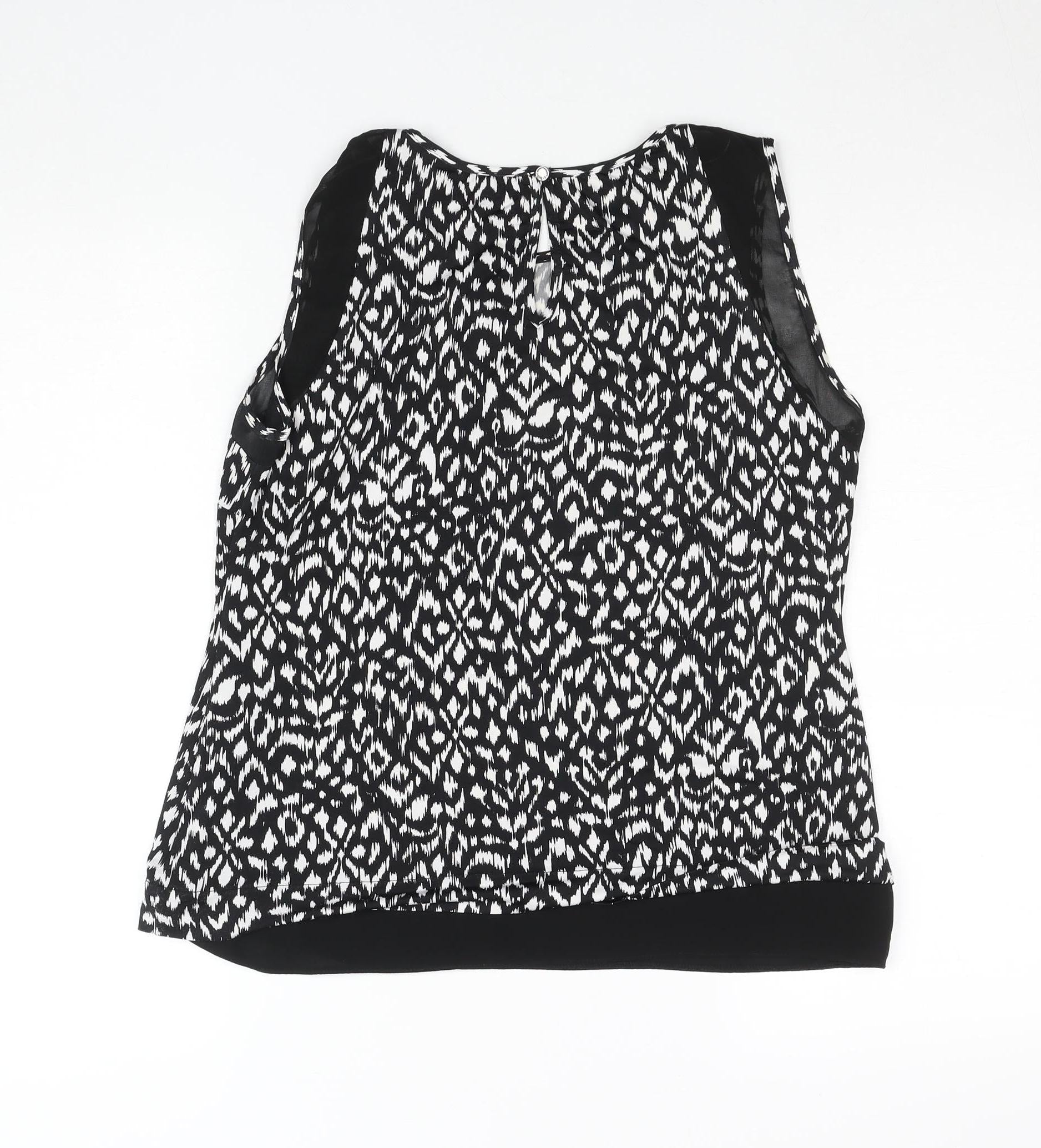 Womens Black Sleeveless Patterned Blouse Size 12
