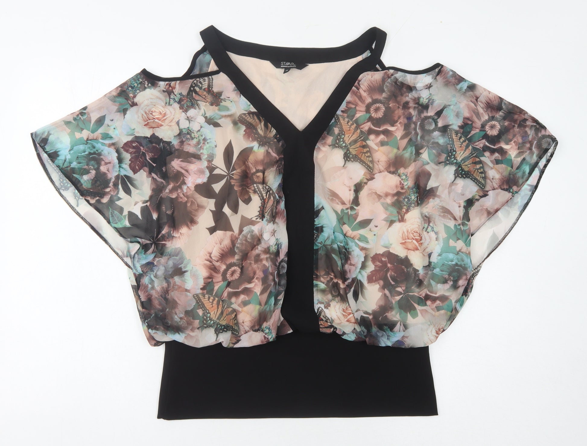 Embrace effortless elegance with this captivating floral kimono blouse from Star by Julien Macdonald. Designed with a beautiful multicoloured floral pattern, this short-sleeve blouse is perfect for women who love to express their unique style. It's crafted from lightweight, breathable chiffon fabric, making it an ideal choice for the spring and summer months. The blouse features a flattering V-neck and comes in a regular size 14, offering a comfortable fit. With its regular fit and pullover style, this blouse is both practical and easy to wear. Whether you're dressing up for a casual day out or a party, this blouse is the perfect addition to your wardrobe. Don't miss out on this stunning piece that combines fashion with comfort. Add a touch of floral elegance to your ensemble today.