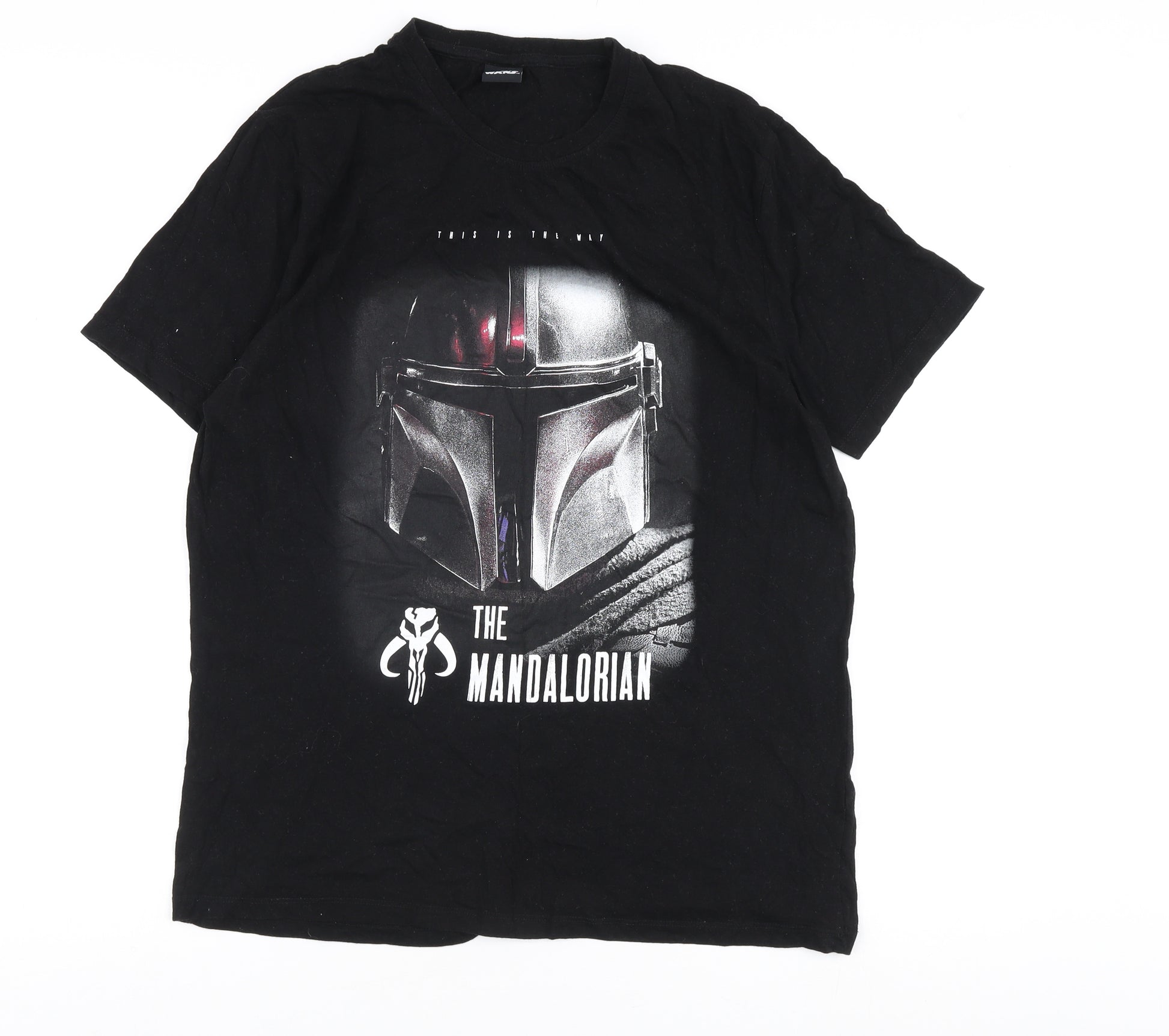 Step into the galaxy far, far away with this classic Star Wars Mandalorian T-shirt. Perfect for any fan of the epic saga, this men's T-shirt showcases an impressive graphic print of the iconic Mandalorian helmet in a sleek black design. Crafted from 100% cotton, the shirt guarantees comfort and breathability, making it an essential casual wear piece for all-day wear. Featuring a regular fit with a crew neckline and short sleeves, it's perfect for pairing with jeans or shorts for a relaxed, geek-chic look. Whether you're binge-watching your favourite episodes or heading out for an adventure of your own, this T-shirt offers a nod to the Star Wars legacy with its stylish design. Ideal for all seasons, the T-shirt is easy to maintain with machine-washable fabric, ensuring your Mandalorian style stays fresh. Light wear has been noted, but rest assured that it retains its excellent condition without any visible damage, ready for you to tell your own story. Revive your wardrobe with this Mandalorian T-shirt and let the world know that the Force is strong with you. A must-have for Disney+ series fans and Star Wars enthusiasts alike!