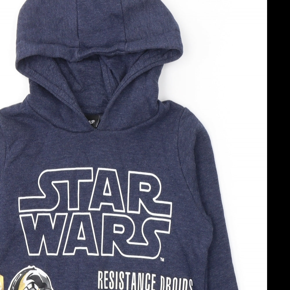 Boys Blue Cotton Pullover Hoodie Size 7 Years Pullover