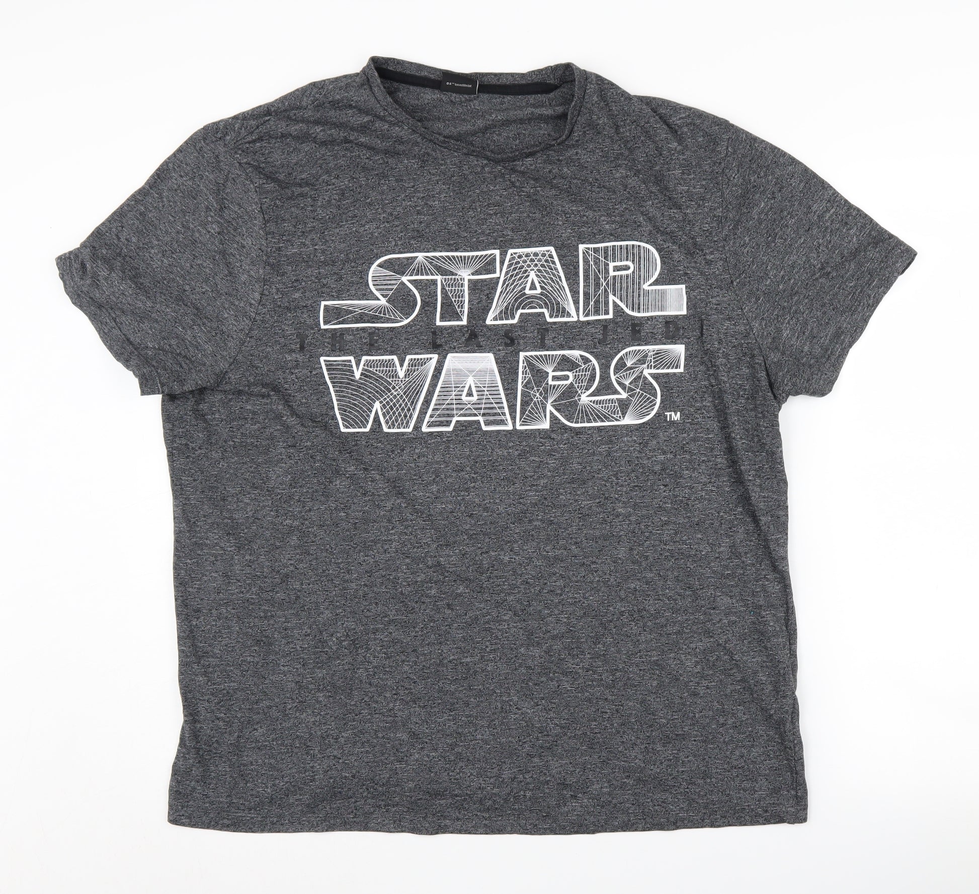 Embrace the galaxy's epic adventures with this Star Wars men's T-shirt in a versatile grey hue. Crafted for comfort, it's made from a blend of cotton and polyester with a touch of elastane, ensuring flexibility for all your daily activities. With the iconic Star Wars logo emblazoned on the front, this shirt lets you showcase your fandom in style. The crew neck and short sleeve design make it perfect for casual outings or lounging at home.Ideal for any Star Wars enthusiast, this XL T-shirt fits regular size and provides a relaxed yet stylish look. Whether you're attending a Star Wars event or simply enjoying a movie night, this shirt is a fantastic choice. Its classic design means it pairs effortlessly with jeans or shorts, making it a staple in your wardrobe.The shirt is new without tags, reflecting an excellent condition with no visible flaws, ready to become a part of your collection. Experience the charm of one of cinema's most beloved franchises while enjoying the comfort of quality fabric. Perfect as a gift for fans or a treat for yourself, this T-shirt is a stellar addition to any attire.Wash this garment with confidence, as the quality ensures longevity and the resilient fabric withstands regular use. Make a stylish statement and keep your wardrobe in tune with the force!