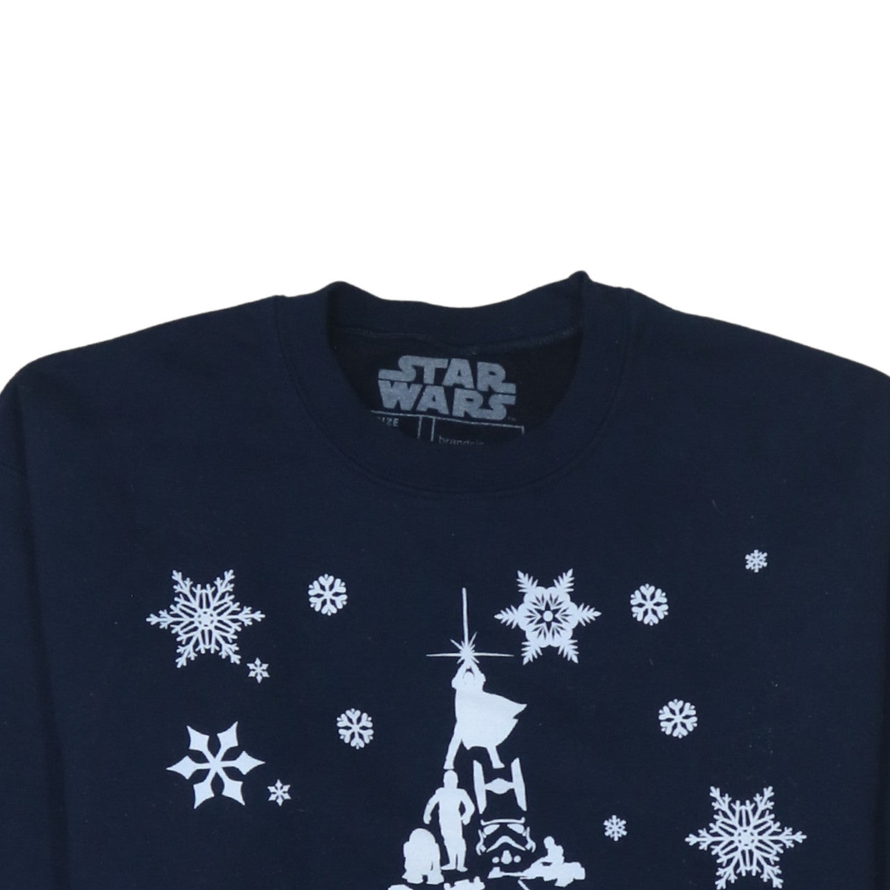 Celebrate your love for the galaxy far, far away with this officially licensed Star Wars women's sweatshirt. Designed in a classic pullover style, it features a festive white Christmas tree graphic composed of iconic Star Wars characters and symbols, including droids, heroes, and starships. Crafted from a soft blend of 80% cotton and 20% polyester, the jersey fabric ensures warmth and comfort while remaining breathable for all-day wear. The navy blue colour serves as a perfect backdrop for the bold white print, creating a striking contrast ideal for the holiday season or casual everyday outfits. The crew neckline and regular fit make it versatile and easy to layer over shirts or under jackets. This medium-sized sweatshirt fits comfortably for regular wear and is machine washable for easy care. Ideal for Star Wars fans, this piece is a fun and stylish way to express fandom during the colder months. Whether you're lounging at home, attending a Christmas gathering, or exploring the city, this pullover provides cosy comfort with a nostalgic twist. Pair it with jeans, joggers, or leggings for a relaxed look that stands out. With its durable print, soft interior, and classic fit, this Star Wars sweatshirt offers both quality and style that lasts season after season. A must-have for collectors and enthusiasts alike, it makes a great gift idea for the holidays or any casual occasion where comfort meets cinematic charm.