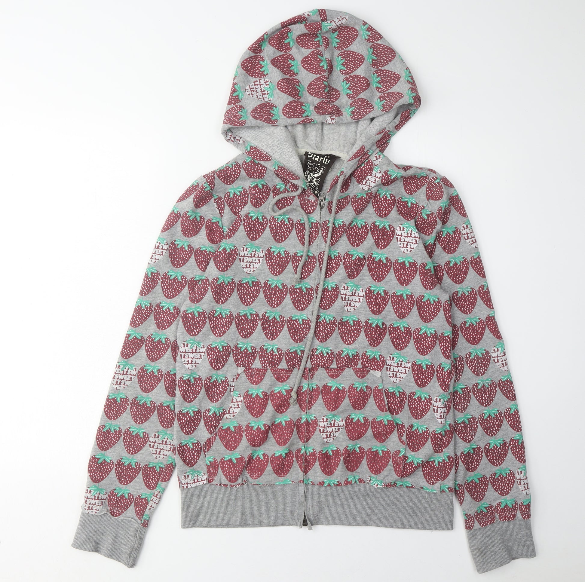 Embrace casual elegance with the Starling Women's Grey Graphic Print Full Zip Hoodie. Crafted for comfort and style, this hoodie is the perfect addition to your wardrobe for those laid-back days. Made from a high-quality blend of 80% cotton and 20% polyester, it ensures a soft, breathable, and durable wear. The attractive grey base adorned with a fun strawberry print adds a quirky charm, making it a standout piece among everyday attire. Featuring a versatile full zip closure, this hoodie is designed with a hood for added warmth and style, perfect for all seasons. Ideal for women seeking casual comfort without compromising on trendiness, this hoodie ensures a relaxed fit in size L. Whether you're heading out for a walk, going for a quick coffee run, or simply lounging at home, this hoodie is your go-to choice for effortless style. The machine-washable fabric means easy care, letting you enjoy this piece without any hassle. Available now, this hoodie offers both quality and charm for those seeking a unique, everyday look.