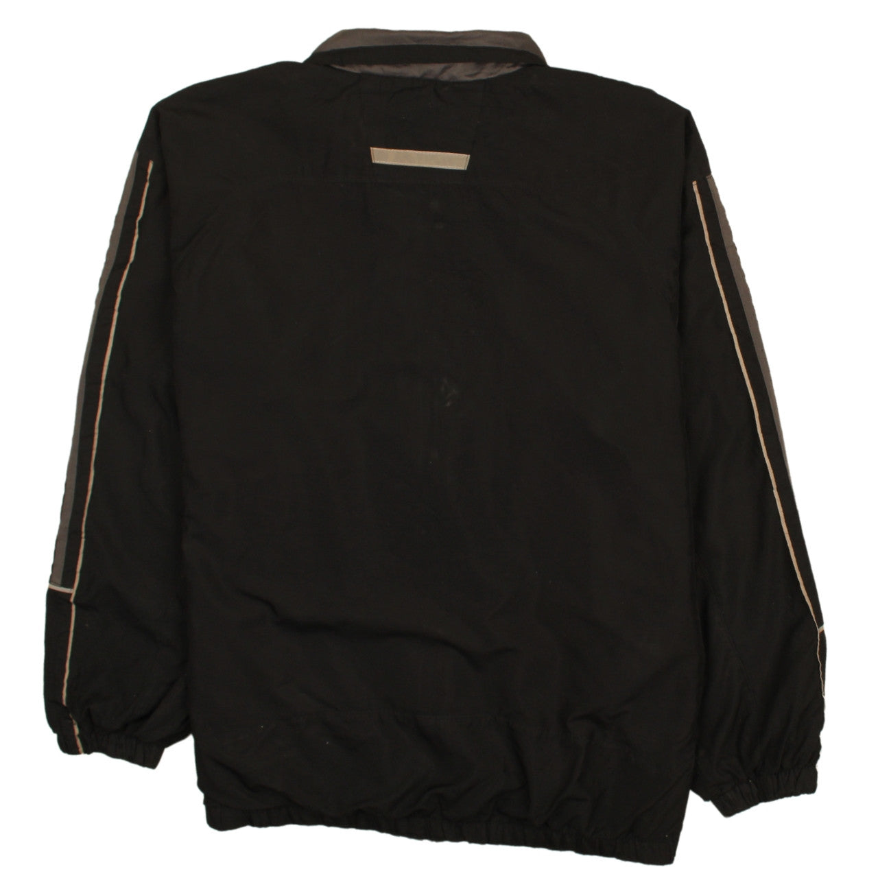Stay comfortable and stylish in this classic Starter men’s black track jacket. Designed for everyday wear and light sport use, this mid-length full zip jacket combines form and function. With its simple black outer shell accented by reflective grey detailing on the sleeves and back, this piece is ideal for activewear or casual outfits. Crafted from lightweight polyester, it offers breathability while still being durable and resistant to wind and light rain. Perfect for layering during cooler months or wearing solo in spring and autumn, this jacket also features elasticated cuffs and hem for a secure fit and adjustable comfort. The stand-up collar with grey contrast lining adds a touch of retro sport-inspired style that pays homage to the classic Starter athletic heritage. The jacket has zipped front closure for easy wear and convenience, with pockets ideal for storing essentials or keeping hands warm. It’s suitable for a variety of activities — from walking, hiking, or running errands to light training sessions. The M (38–40) medium chest size ensures a comfortable, regular fit for most men. Finished in a universally flattering black tone, this versatile jacket easily pairs with jeans, joggers, or performance trousers. Perfect for gym use, outdoor workouts, or simply as a casual windbreaker. This Starter jacket is in excellent pre-owned condition with minimal wear evident, meaning it retains quality with a long lifespan ahead. A dependable classic for those who appreciate timeless activewear design with functional practicality at an affordable price. Grab this piece to refresh your outerwear rotation with a brand known for its sporty and reliable apparel.