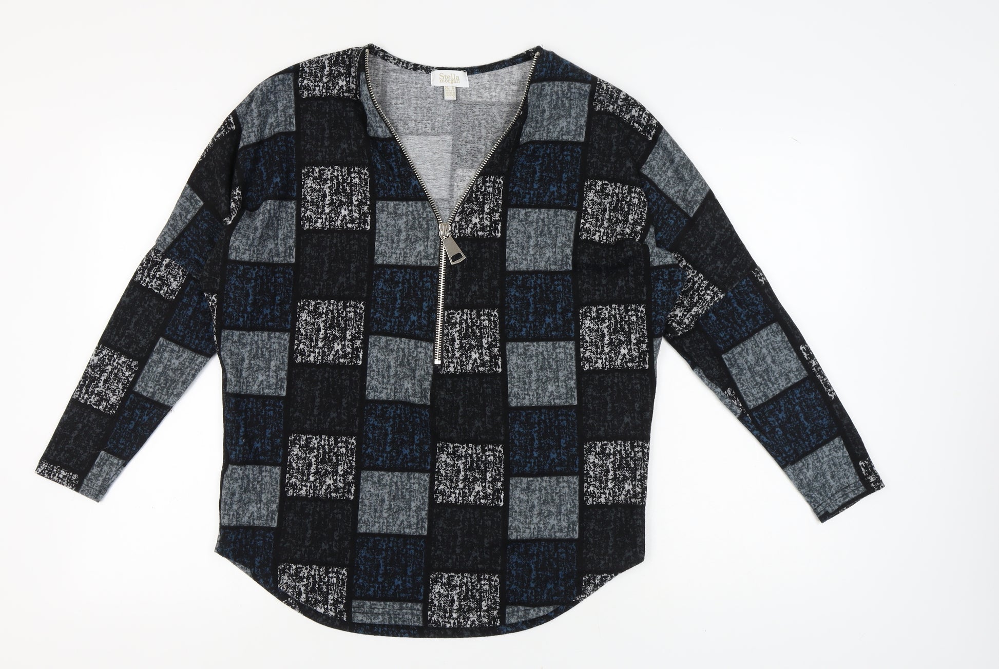 Introducing the stylish Stella Morgan Women's Top, perfect for adding a touch of geometric flair to your wardrobe. Crafted with precision, this piece features a striking multicoloured pattern that seamlessly blends shades to create a captivating look. Designed for the modern woman, its classic long sleeves make it an ideal choice for both autumn and winter outings.Meticulously designed with a V-neckline, this top effortlessly combines comfort and style. The zip accent adds a touch of modernity, ensuring that you stand out in any casual setting. With its regular fit, this garment promises a perfect drape, enhancing your silhouette without compromising on comfort.This piece is not only fashion-forward but also practical for everyday wear. Suitable for casual occasions, pair it with your favourite jeans or skirt for a versatile look. The excellent condition of the top ensures durability and long-lasting wear, making it a valuable addition to your collection.Elevate your fashion game with this exquisite Stella Morgan top, a must-have for those who appreciate quality and style. Don't miss out on the opportunity to own this beautiful piece, ideal for expressing your unique style.