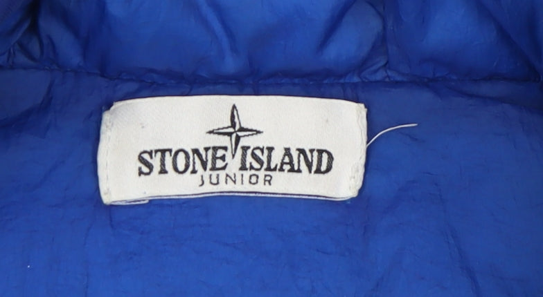 Embrace cold days with this stylish Stone Island Junior Puffer Jacket for boys. Crafted in a vibrant blue hue, this jacket is perfect for winter adventures. Designed with functionality in mind, it features a hood to keep your little one warm and protected. The jacket showcases a comfortable fit, perfect for layering over casual outfits. With both button and zip closures, it ensures a snug fit against chilly winds. The jacket also boasts practical zipped pockets, ideal for keeping small essentials handy. Although slight discoloration and minor signs of wear can be spotted on the sleeves, it remains in very good condition, retaining its style and functionality. A logo accent adds an authentic touch, making it a fashionable choice. This short-length jacket with long sleeves and machine washable fabric ensures easy care. Whether for school or a casual outing, this puffer jacket is a versatile and practical addition to your child’s wardrobe, offering warmth and style all in one.