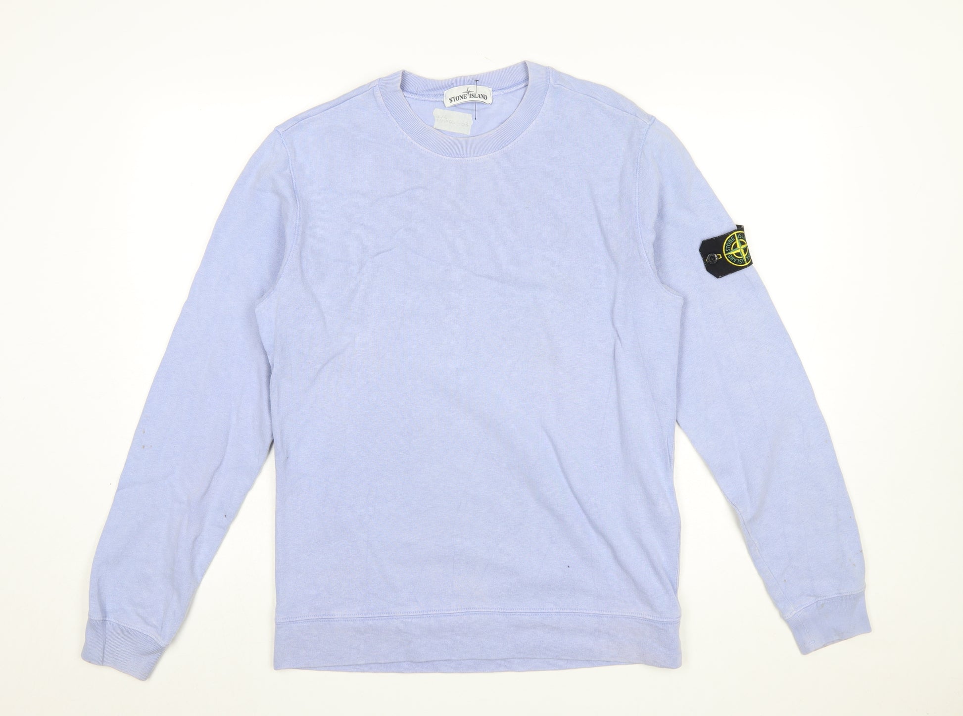 This Stone Island men's blue crew neck sweatshirt is a true wardrobe essential for anyone who appreciates quality and timeless casual style. Crafted from 100% premium cotton in a soft jersey fabric, it offers exceptional comfort, breathability, and durability. Designed with the brand’s iconic compass patch logo on the sleeve, it instantly communicates understated designer appeal. The pullover style with ribbed cuffs and hem ensures a classic fit that works equally well for layering or as a standalone piece. Its versatile midweight cotton construction makes it ideal for autumn, spring, and winter wear—perfect for layering with a jacket when the temperature drops. Featuring a relaxed regular fit and long sleeves, this sweatshirt is suited to both everyday wear and casual outings. The smooth crew neckline keeps it comfortable around the neck, while the subtle blue tone adds a refined yet easy-going appeal to any outfit. Although it shows minor marks on the sleeve and cuff, the garment remains in very good condition, maintaining its shape and colour beautifully. This Stone Island sweatshirt reflects the brand’s signature craftsmanship, offering luxury streetwear aesthetics with practical comfort. Pair it with jeans or joggers for a laid-back day look or style it smart-casual with chinos for effortless refinement. Perfect for those who seek both function and fashion in designer menswear, this timeless piece provides long-lasting wear that will fit seamlessly into your collection. A high-quality example of Stone Island’s attention to fabric innovation and design integrity, this sweatshirt is a must-have staple for modern men. Whether for weekend comfort or casual sophistication, it’s a piece that ensures both style and substance every time you wear it.