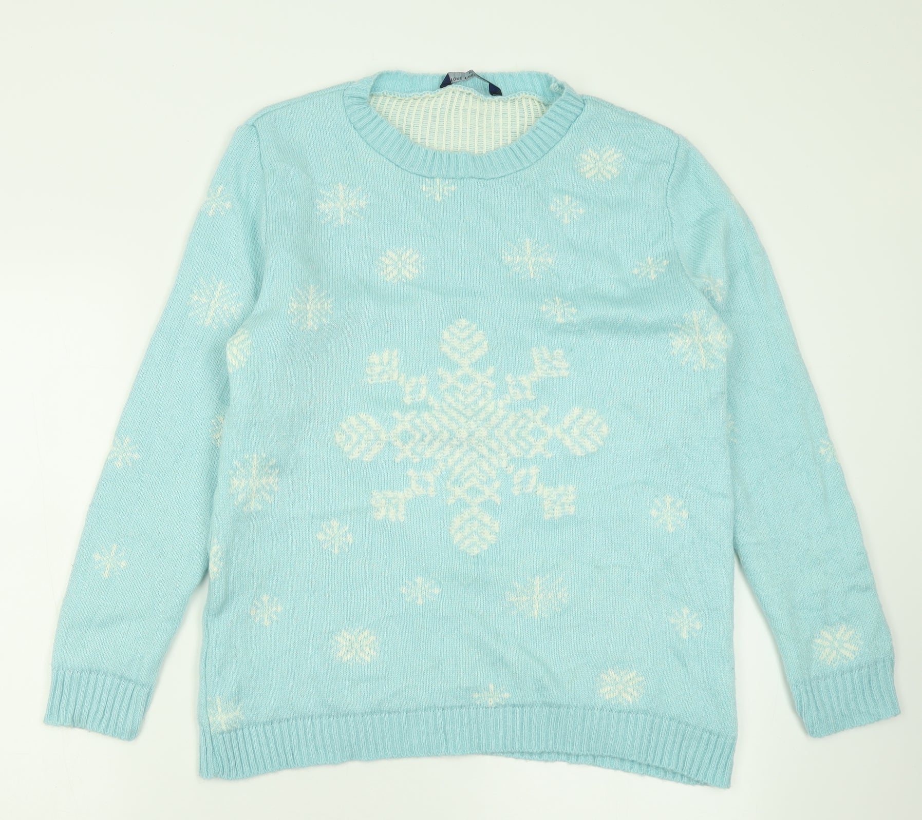 Marks and Spencer Women Blue Wool Blend Crew Neck Jumper M