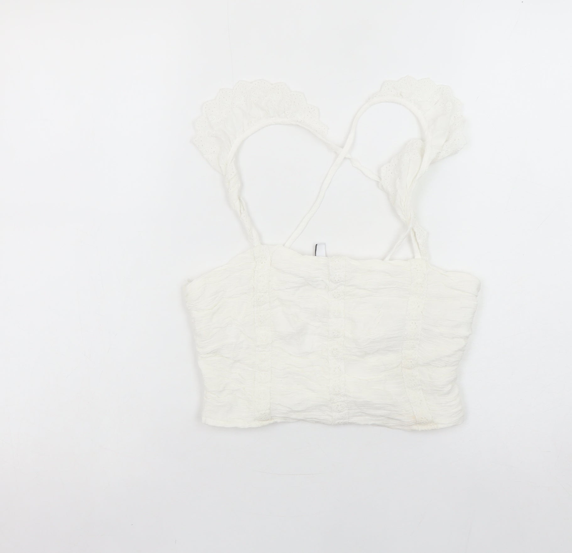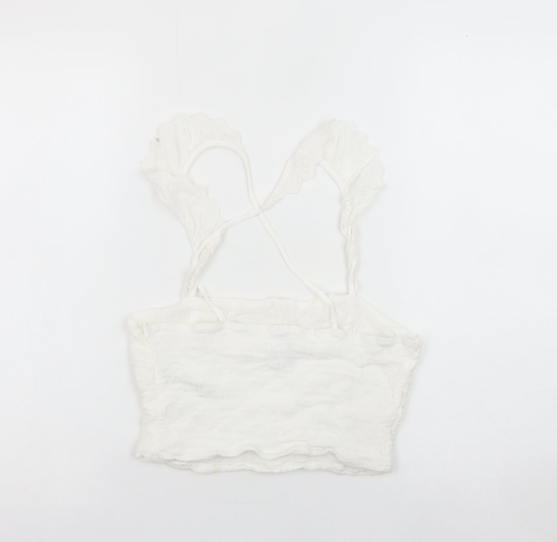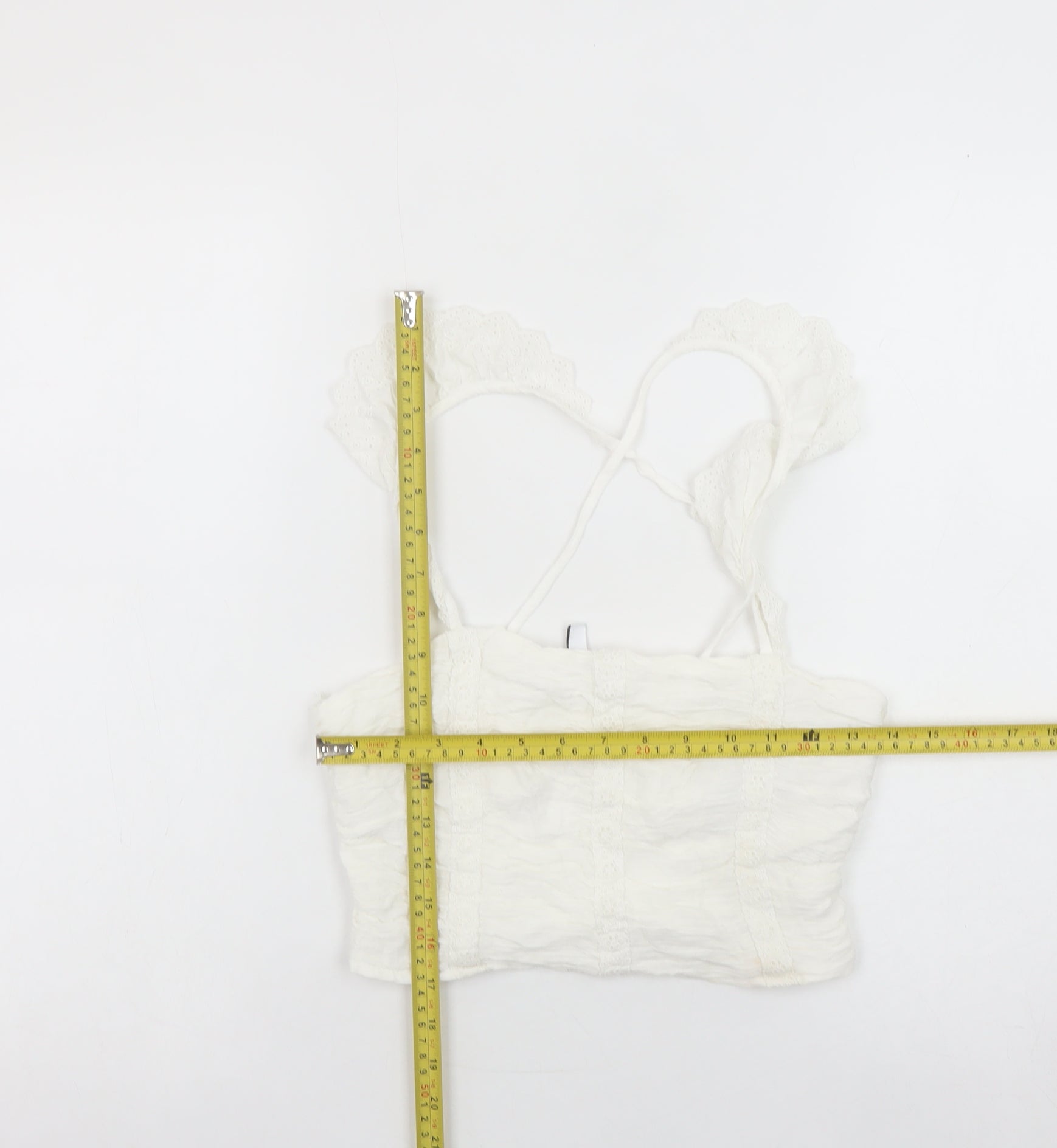 Regular price£6.50£650Regular priceUnit price / perSale price £6.50 GBPBershka Women White Cotton Cropped Blouse Size L Ruffle Sleeve Summer Top