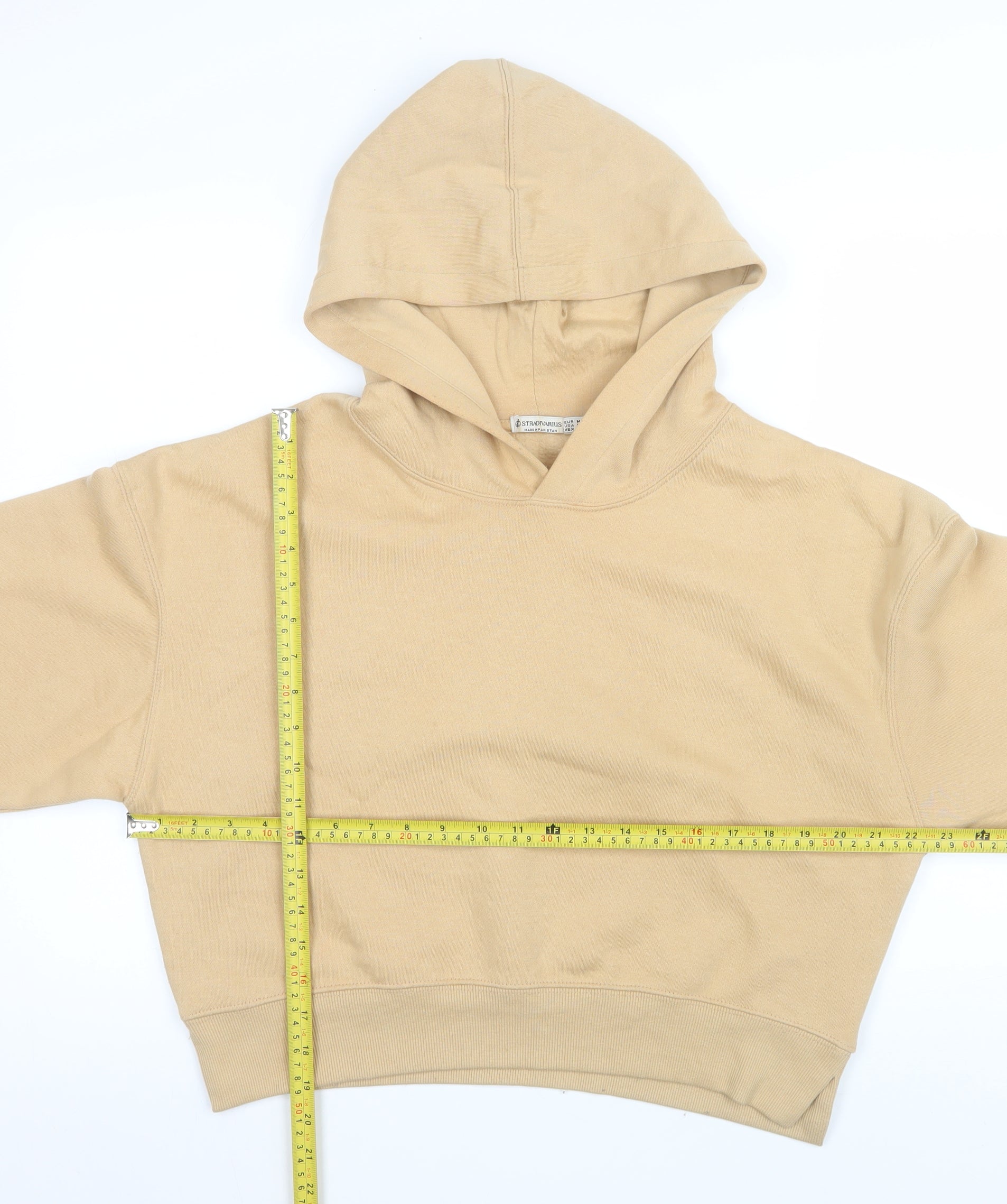 Step into effortless comfort and casual style with this Stradivarius women's beige pullover hoodie, crafted for those who love combining simplicity with a touch of modern charm. Made from a soft and breathable cotton-polyester blend, this hoodie delivers both warmth and easy wearability, perfect for all seasons. The neutral beige shade offers a versatile base that pairs effortlessly with jeans, leggings, or skirts, making it an ideal wardrobe essential for casual outings or cosy days at home. Designed with a relaxed fit, ribbed cuffs, and a fitted hem, it ensures flattering comfort, while the hood adds practicality and a laid-back vibe. The medium size is suitable for most regular UK women’s fits, offering enough room for layering without compromising style. Stradivarius is known for creating fashion-forward pieces that blend quality construction with trend-led details, and this hoodie is no exception—simple, stylish, and timelessly chic. Whether you're lounging, travelling, or heading out for a laid-back meet-up, this hoodie promises a clean yet confident look. Its pullover design keeps things minimal, while the durable blended fabric ensures it remains a favourite season after season. Style it with joggers for a sporty finish, or throw it over a collared shirt for a smart-casual twist—the possibilities are endless. Elevate your everyday comfort with this Stradivarius beige pullover hoodie—where minimalism meets effortless sophistication.