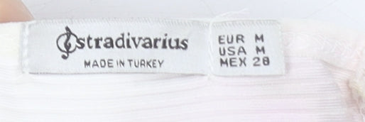 Update your wardrobe with this stylish women's bodysuit from Stradivarius, perfect for effortless day-to-night dressing. Crafted in Turkey, this versatile beige and ivory tie dye bodysuit combines modern design with soft stretch fabric for a flattering fit. The ribbed texture and long sleeves add elegance, while the scoop neckline with criss-cross strap detail gives a contemporary twist to a timeless staple. Made from a quality blend of polyamide and elastane, the material offers breathability, comfort, and slight flexibility for easy movement. The neutral tie dye pattern ensures it pairs beautifully with jeans, skirts, or trousers for endless outfit possibilities. Designed for the modern woman, this Stradivarius bodysuit is ideal for casual outings, everyday wear, or layering under a jacket for an evening look. The fitted silhouette enhances the figure while maintaining comfort throughout the day. Its minimalist yet chic aesthetic makes it suitable for multiple occasions — whether you're grabbing coffee with friends, heading to the office, or dressing up for a night out. In excellent pre-loved condition with no visible signs of wear, this item maintains its original quality. Its soft rib-knit composition ensures durability while providing a smooth texture against the skin. Style it with high-waisted jeans and boots for a casual-chic ensemble or tuck it into a leather skirt for a more polished appearance. With its fashionable tie dye pattern, fitted design, and timeless colour palette, this Stradivarius bodysuit offers comfort, versatility, and a stylish statement piece that will blend seamlessly into your wardrobe.
