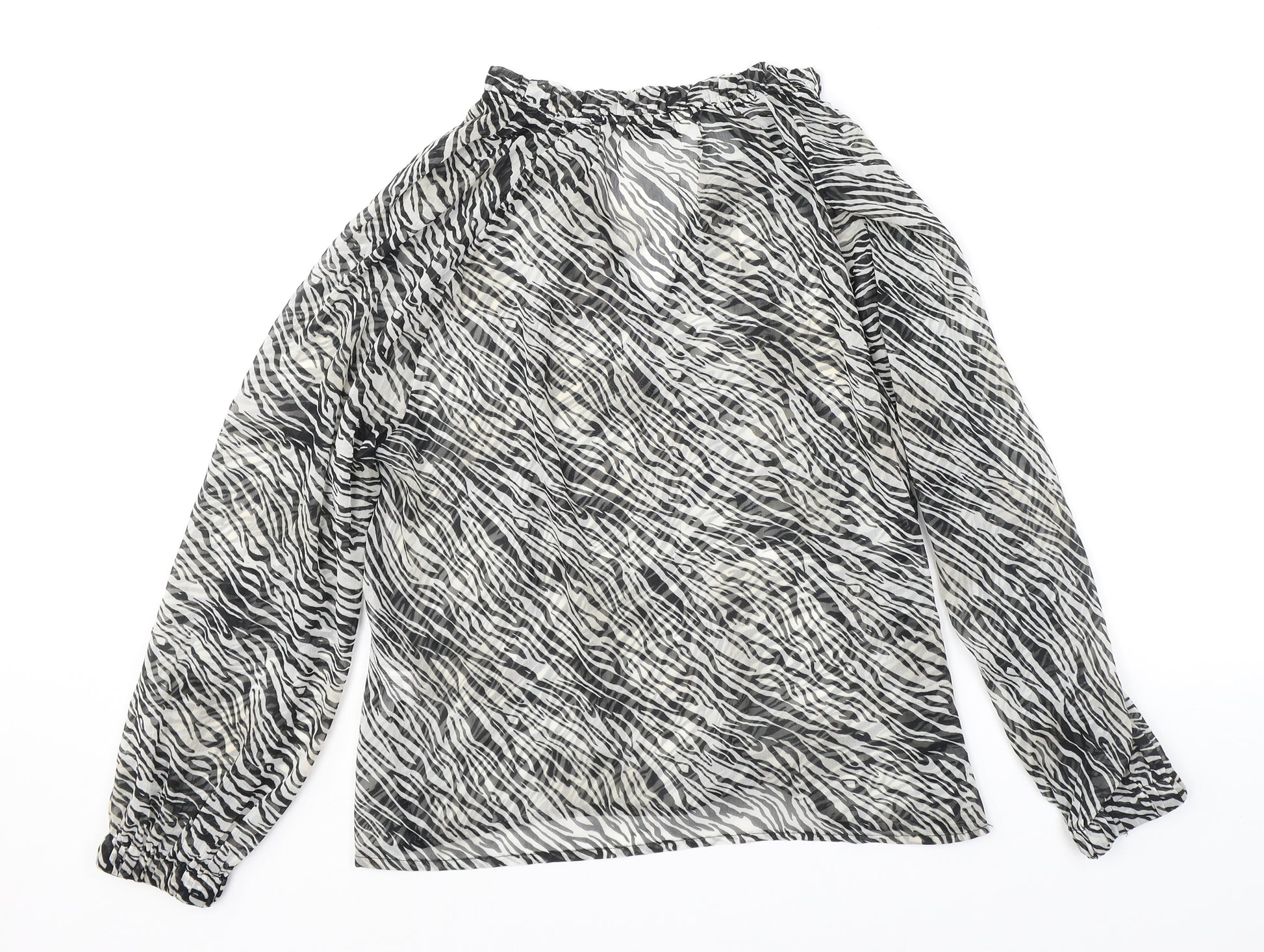 Womens Black Animal Print Polyester Basic Blouse Size M V-Neck