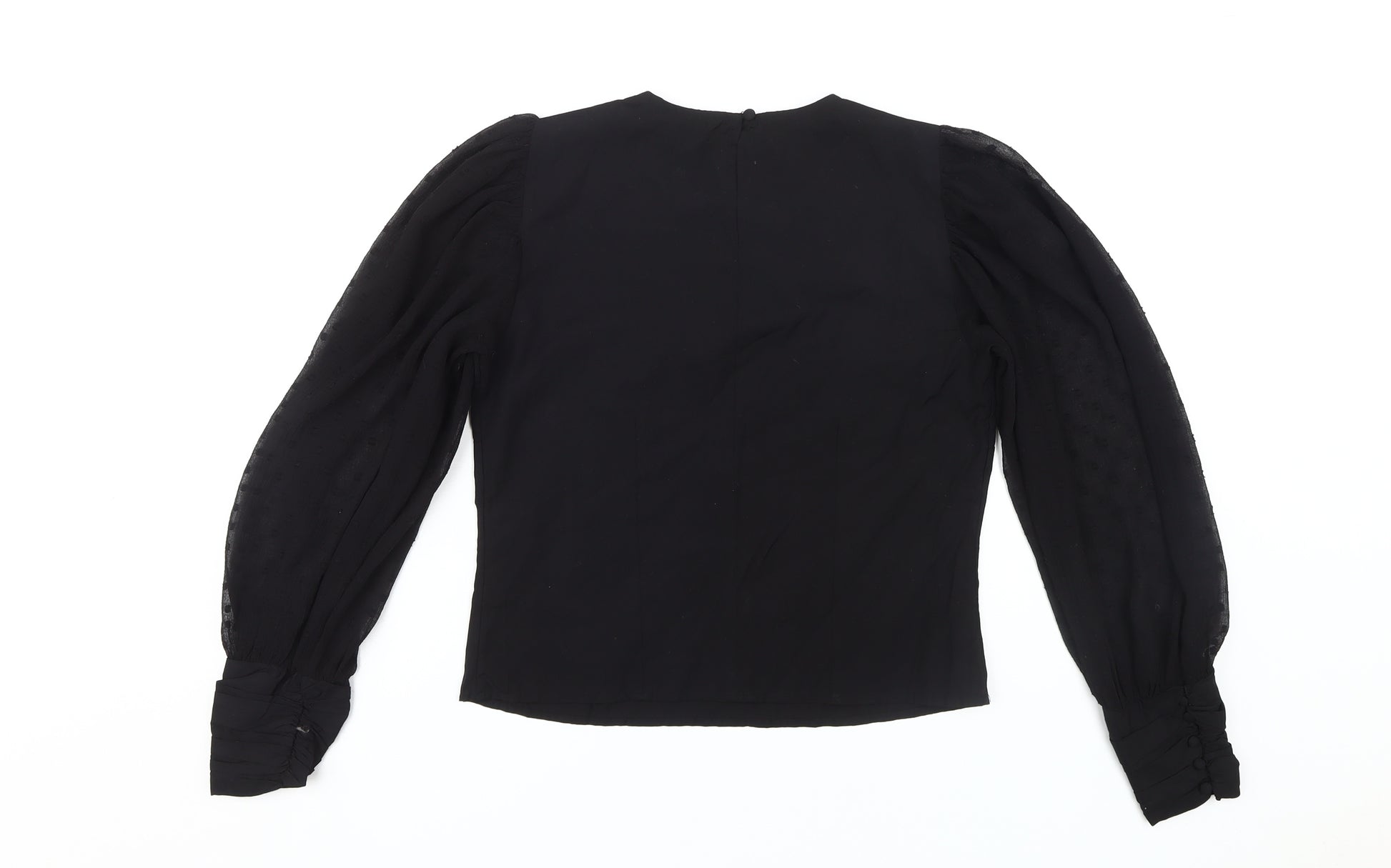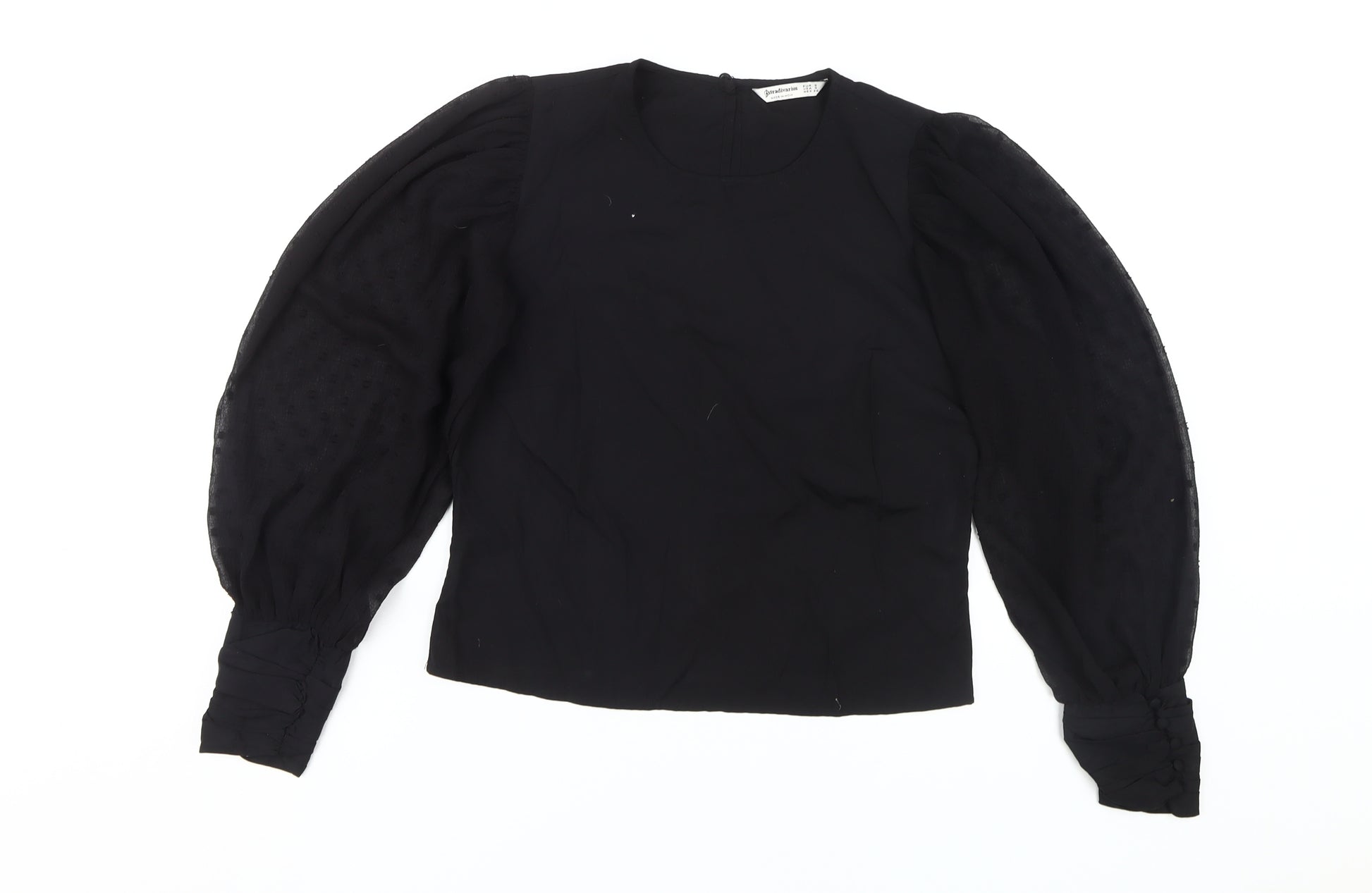 Elevate your wardrobe with this elegant Stradivarius black blouse, perfect for casual or business events. Crafted in a timeless design, this blouse features long balloon sleeves and a chic round neckline. Made from 100% polyester, it offers a comfortable and flattering fit that’s ideal for both autumn and winter seasons.The blouse comes in a versatile small size suitable for women, making it a stylish choice for a variety of occasions. Whether you're dressing up for a business meeting or opting for a relaxed casual look, this solid black blouse can seamlessly blend into your outfit choices.With a sleek button closure at the back, the blouse ensures a snug fit while adding a touch of sophistication to your ensemble. The vibrant black colour can easily be paired with other wardrobe staples, ensuring you have a reliable go-to option whenever you wish to impress.Overall, this Stradivarius women's blouse is a testament to high-quality craftsmanship and fashionable design, promising to enhance your apparel collection with its modern look and comfortable feel. It's a must-have for anyone looking to add a touch of elegance to their everyday wear.