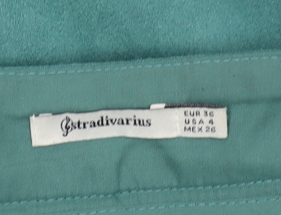 Elevate your wardrobe with this chic Stradivarius women's skirt in a captivating blue hue. Perfect for casual outings, this short-length skirt features a flattering mid-rise fit and a smooth button accent design that adds a touch of sophistication. Crafted from a comfortable and stretchy fabric blend of 95% polyester and 5% elastane, it ensures ease of movement and a great fit. Designed for all seasons, it's an excellent choice for layering or wearing alone during warmer months. With its clean and simple no-pattern look, this skirt can easily be paired with a variety of tops, making it a versatile addition to your closet. Whether you're heading for a casual day out or a relaxed evening gathering, this Stradivarius skirt offers style and comfort. In excellent condition with no visible flaws, it's a great find for fashion-conscious women. Make it yours today and enjoy a stylish outfit option that's both trendy and practical.