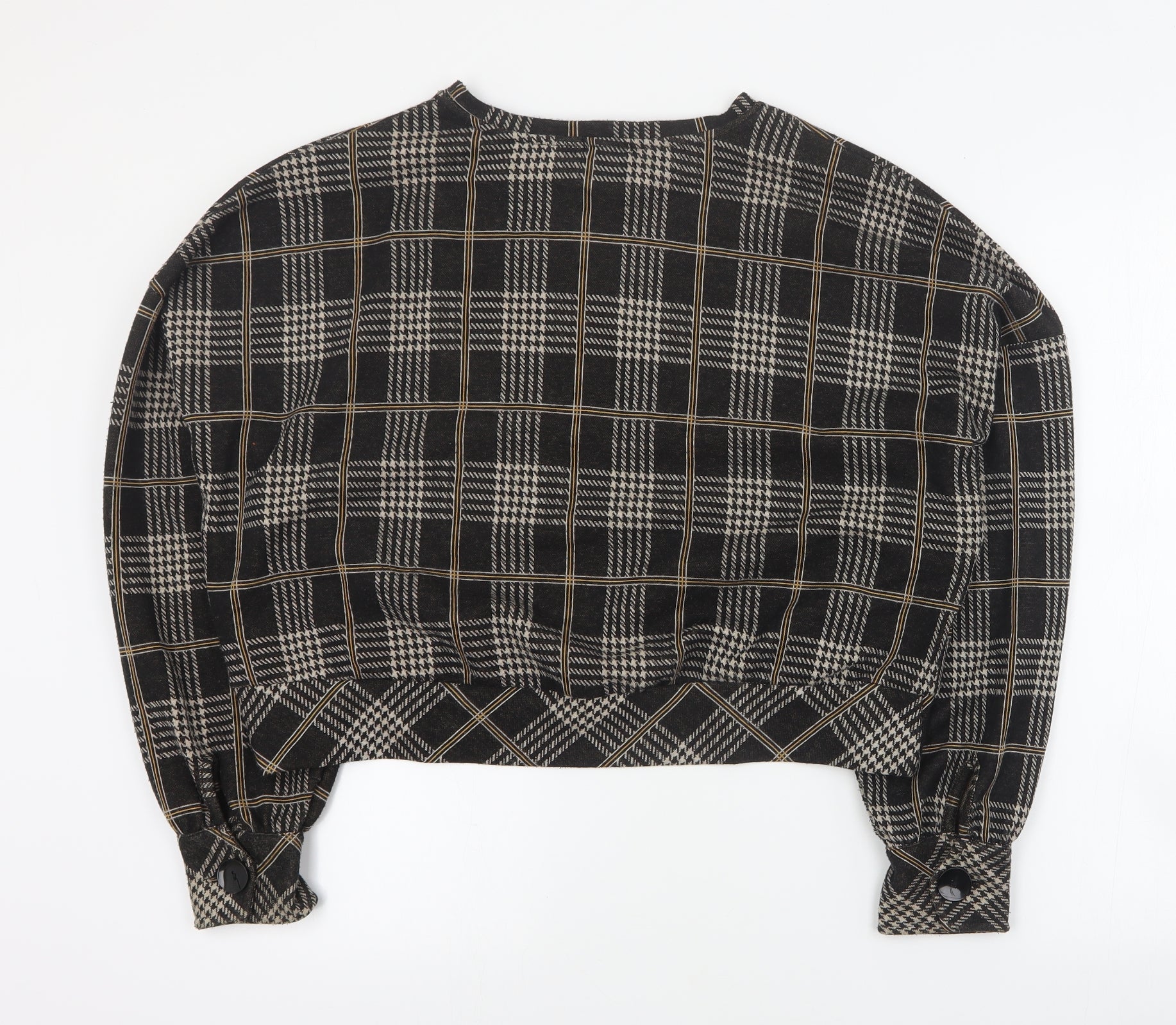 Womens Brown Round Neck Plaid Polyester Pullover Jumper Size L