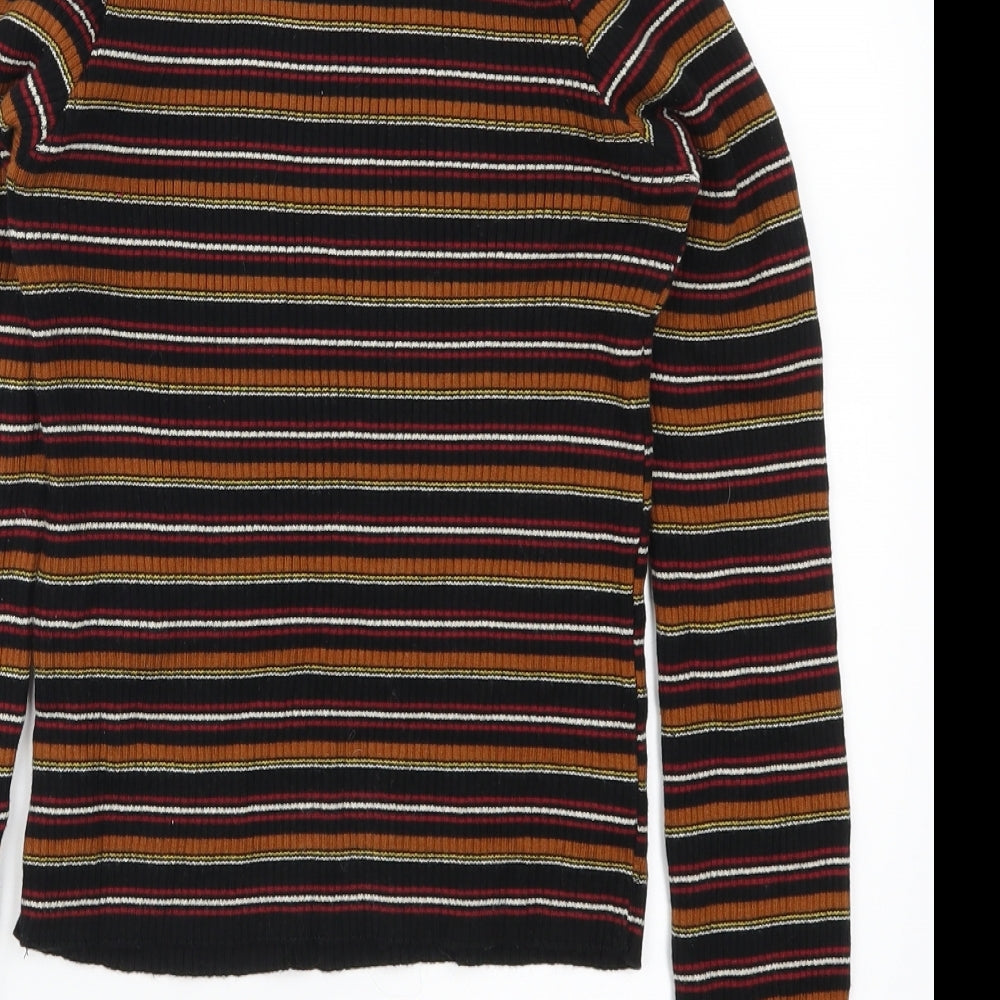 Womens Brown Striped Pullover Jumper Size L