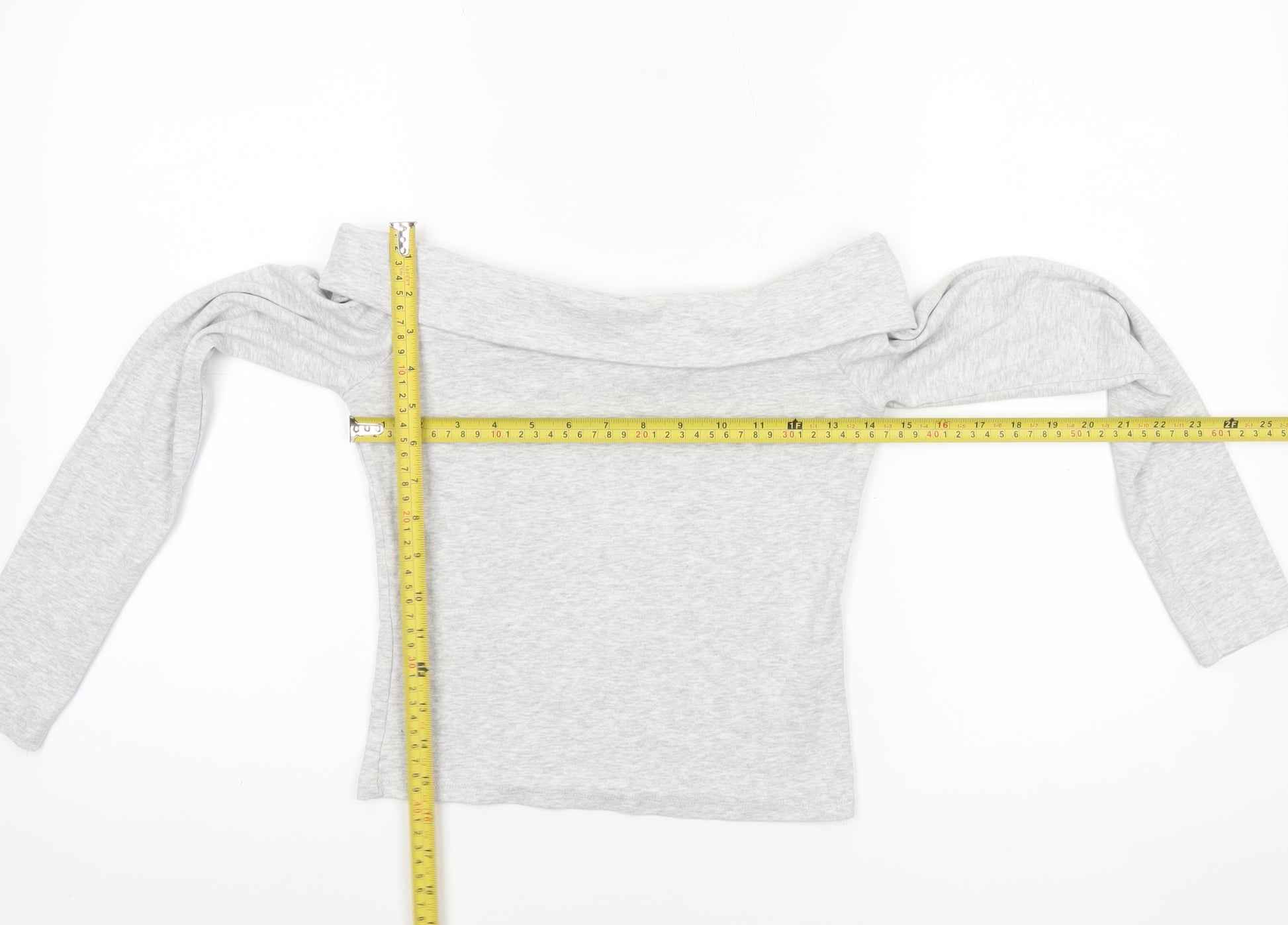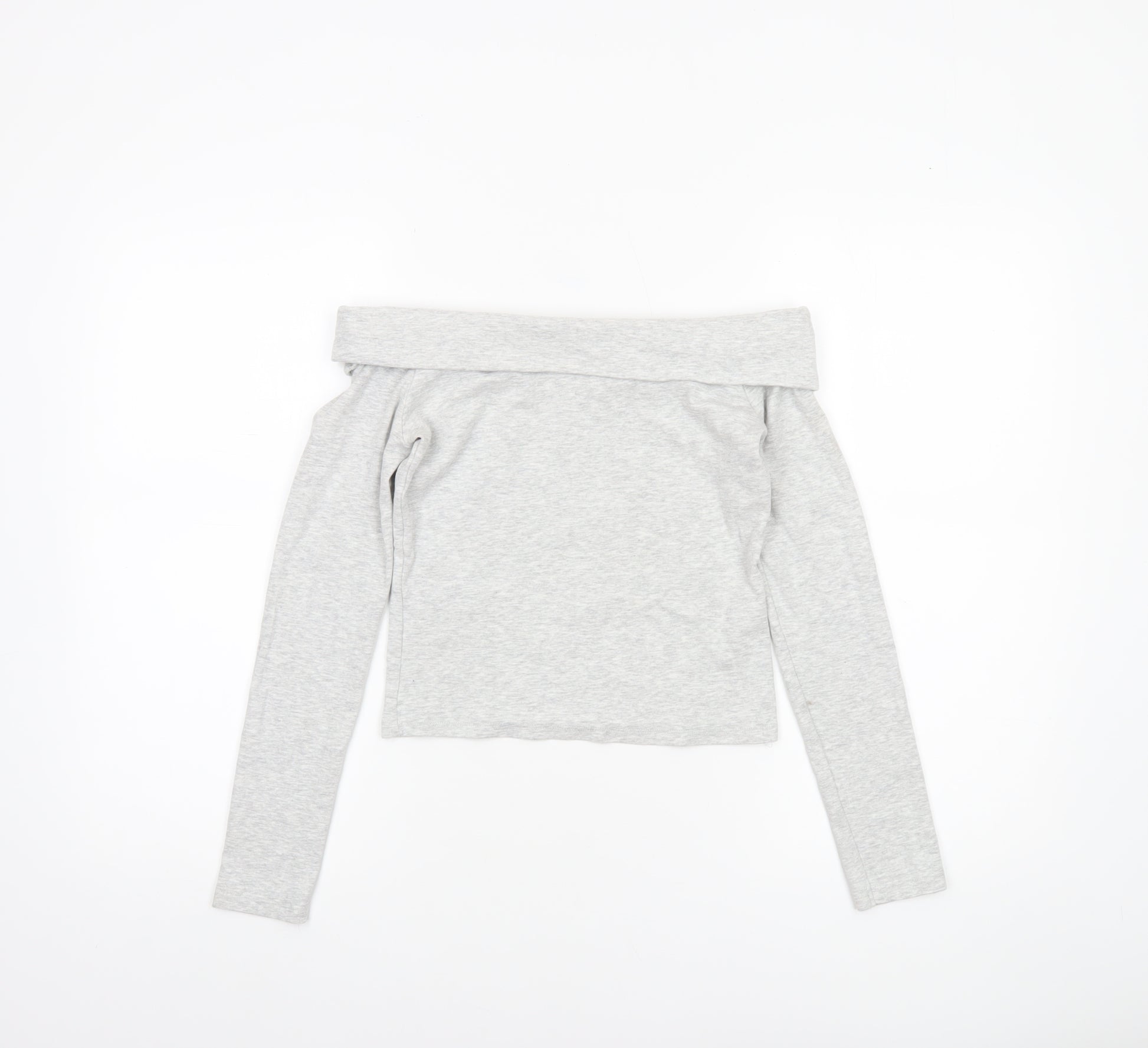 Womens Grey Off Shoulder Cropped Long Sleeve Top Size 12