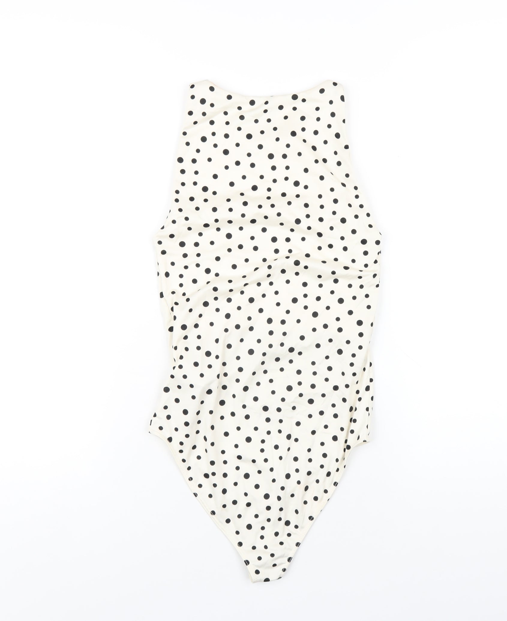 Womens Ivory Polka Dot Polyester Bodysuit One-Piece Size S Snap