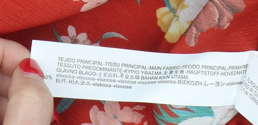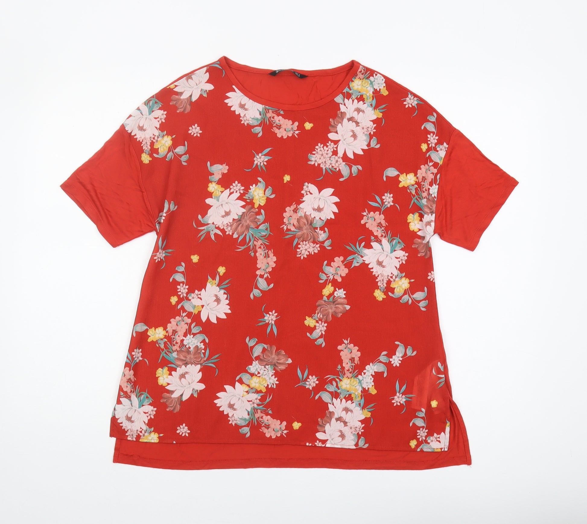 Women's Red Floral T-Shirt, Size S, Viscose