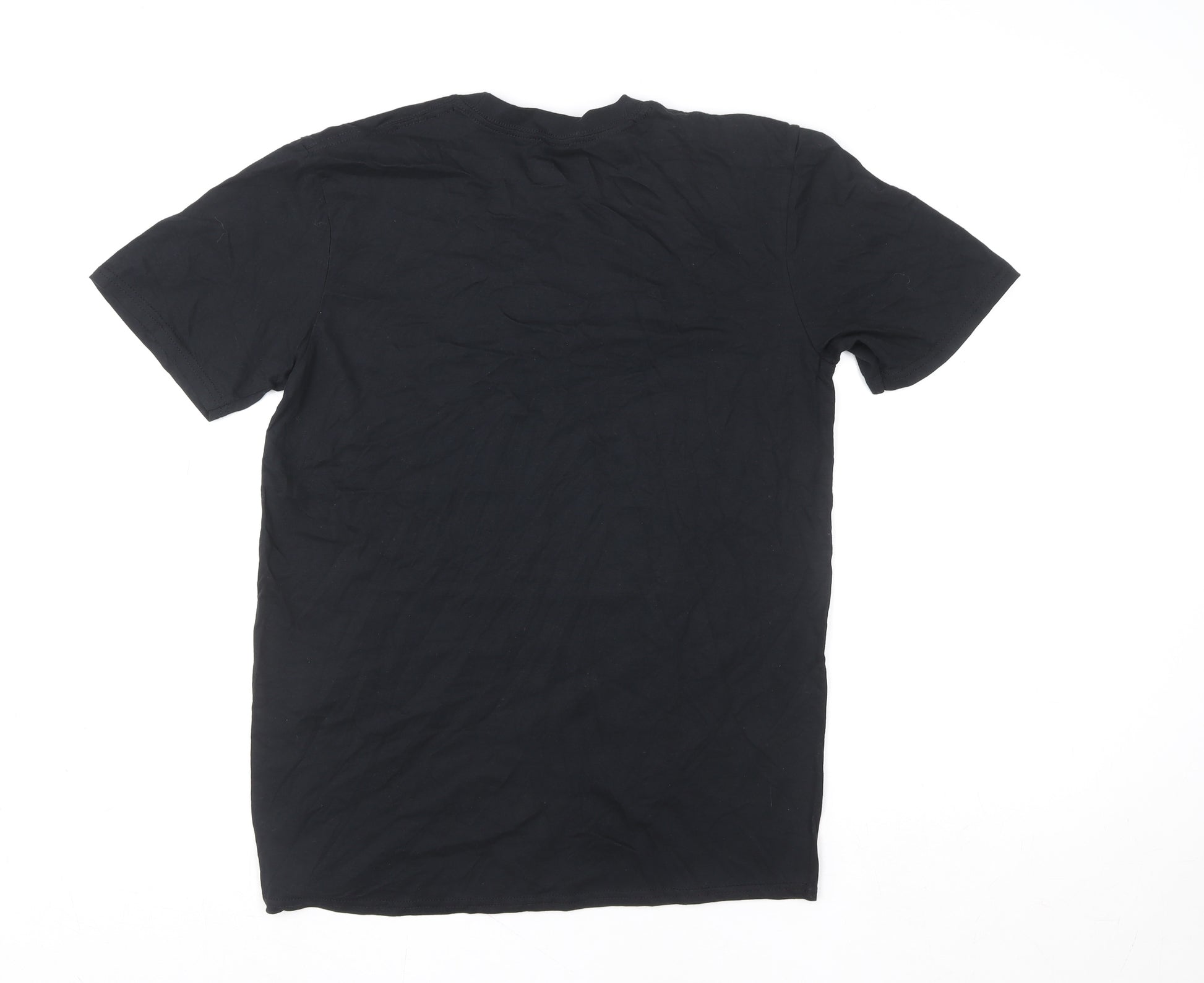 Step into the world of Hawkins with this officially licensed Stranger Things women’s black graphic T-shirt. Designed for fans of the hit Netflix series, this short sleeve tee features an eye-catching red and grey print on a deep black background, showcasing silhouettes of the show’s main characters above the eerie tentacles of the Upside Down. Made from 100% cotton jersey fabric, it offers a breathable and comfortable fit that’s ideal for casual wear all year round. The easy-care cotton material makes it simple to wash while maintaining its shape and bold print. Featuring a classic crew neckline and a regular fit, this tee combines comfort with laid-back style, making it a versatile addition to any wardrobe. Perfect paired with jeans, leggings, or layered under a jacket, this Stranger Things shirt is the ultimate statement piece for lovers of nostalgic, geek-chic fashion. Whether you’re binge-watching your favourite episodes or heading out with friends, its lightweight design ensures you stay cool and stylish. The soft cotton fabric adds to the overall comfort, while the dark tones provide an effortlessly wearable look. The Stranger Things branding certifies authenticity, making it an ideal collectible or gift for fans who appreciate both comfort and pop culture-inspired fashion. In excellent condition, showing only light signs of wear with no visible damage, this T-shirt remains in fantastic shape and ready to wear. Bring a touch of supernatural mystery to your everyday look with this officially licensed Stranger Things graphic top — a must-have for fans of retro-inspired sci-fi style. Ideal for casual occasions and relaxed outings, this piece blends minimalist design with iconic imagery to create an instantly recognisable look. Don’t miss out on owning a piece of pop culture that’s as versatile as it is effortlessly cool.