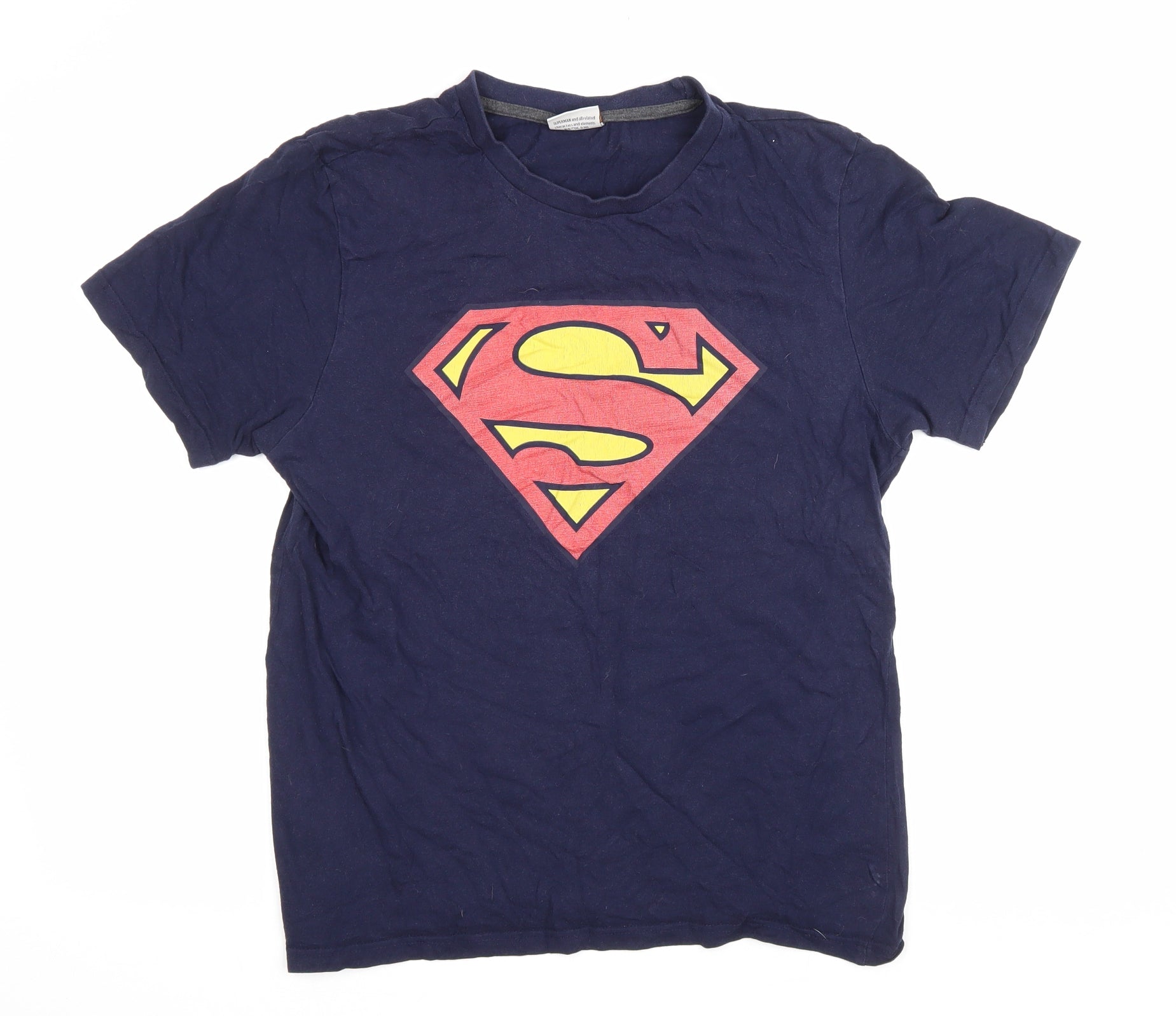Mens Blue Cotton T-Shirt Size S Round Neck - Superman