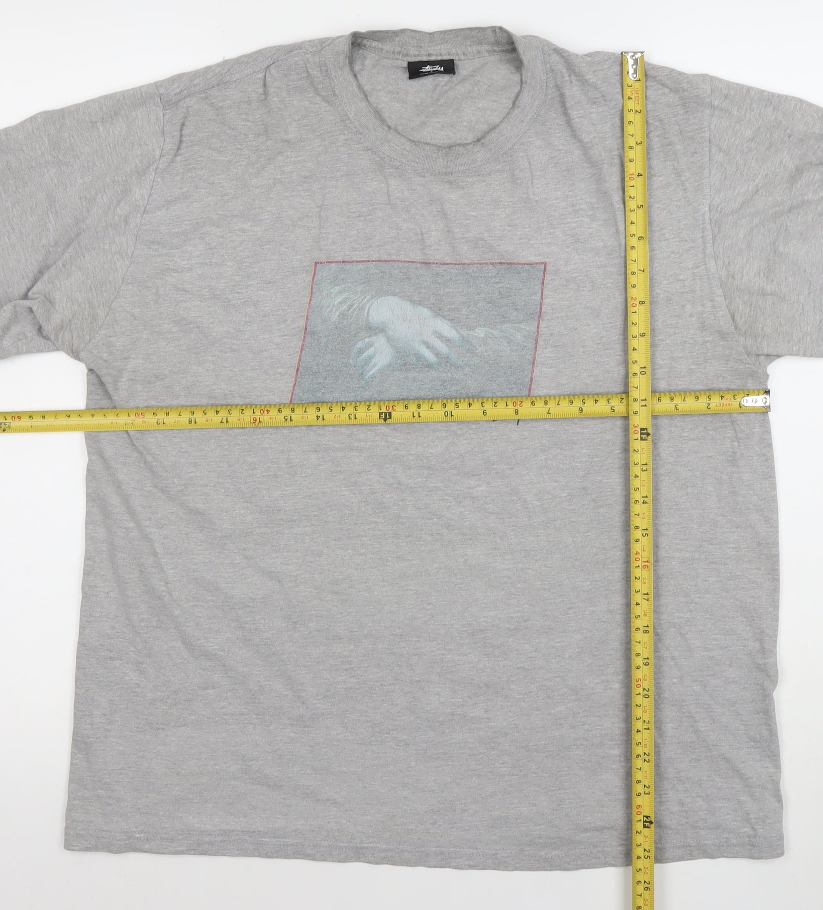 Make a bold statement in this Stussy men’s grey graphic T-shirt, an ideal blend of urban style and comfort. Made from a soft jersey material crafted of 90% cotton and 10% polyester, this piece offers a lightweight and breathable feel perfect for all seasons. The crew neckline, short sleeves, and regular fit ensure casual ease while giving a stylish streetwear look that Stussy is renowned for. Featuring an artistic hand-inspired graphic design on the chest, it captures creative flair while adding individuality to your everyday outfit. The smooth grey colour complements most jeans, shorts, or joggers, allowing effortless coordination for any casual setting—from relaxed weekends to low-key evenings out.This T-shirt is machine washable for easy care and has been well-preserved in very good condition, showing only minimal signs of previous wear without defects or marks. The lightweight fabric and crew neck design make it ideal for layering or wearing solo during spring, summer, or autumn. The printed Stussy logo adds authenticity and a stylish accent that conveys confidence and quality. Designed for men with a regular size type, this T-shirt in size large offers a relaxed yet contemporary silhouette suitable for both teens and adult wearers.Ideal for those who value modern streetwear fashion and timeless appeal, this Stussy grey graphic print T-shirt makes an excellent addition to your collection. Pair it with denim jeans, cargo shorts, or sporty track bottoms for a laid-back, effortlessly cool look. With its balance of durability, comfort, and standout design, this piece embodies contemporary casual flair and makes a great choice for those who appreciate classic brand style and street-culture aesthetics.