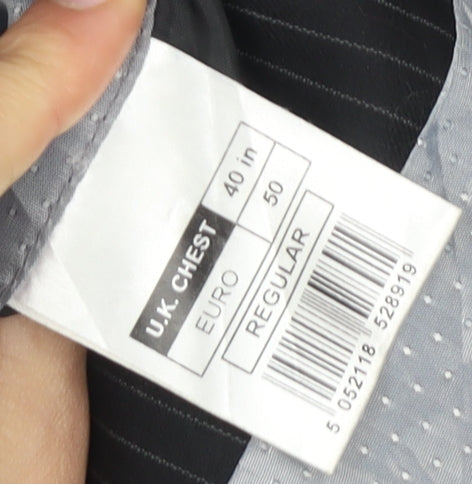 This classic Stvdio men's black blazer exudes sophistication with its sleek pinstripe design. Crafted from 100% wool, it promises not only a high-quality feel but also an enduring sense of style. Its single-breasted cut and notch lapel create a timeless silhouette that is ideal for both professional and formal occasions. The blazer is UK size 40 chest, ensuring a regular fit that offers comfort throughout your day. The lining, made of a blend of polyester and viscose, enhances durability and ensures a smooth feel against the skin. Featuring a two-button front and four-button sleeves, this blazer is detailed with precision to maintain a polished look. Despite being slightly worn, it remains in excellent condition and is ready for continued use. Perfect for those who seek an elegant addition to their business or formal wardrobe, this blazer is an invitation to elevate your fashion statement effortlessly.