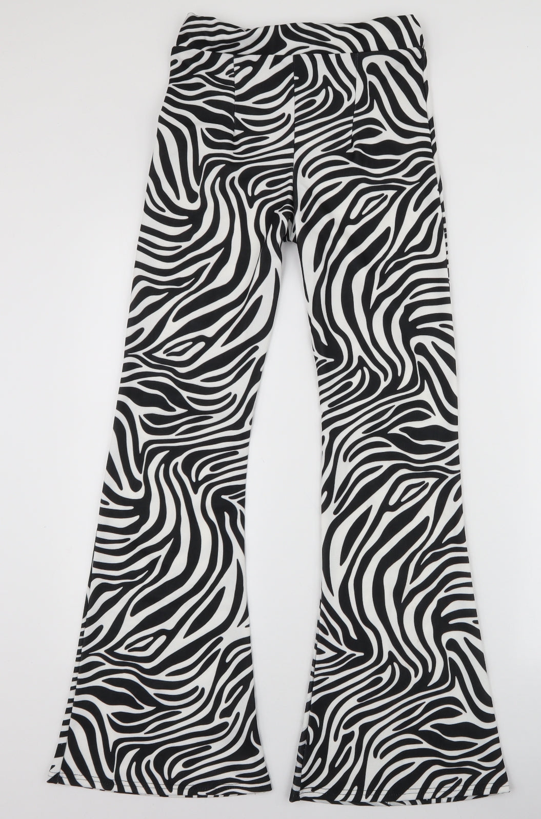 Womens Black Animal Print Polyester Trousers Size 8 L30 in Regular