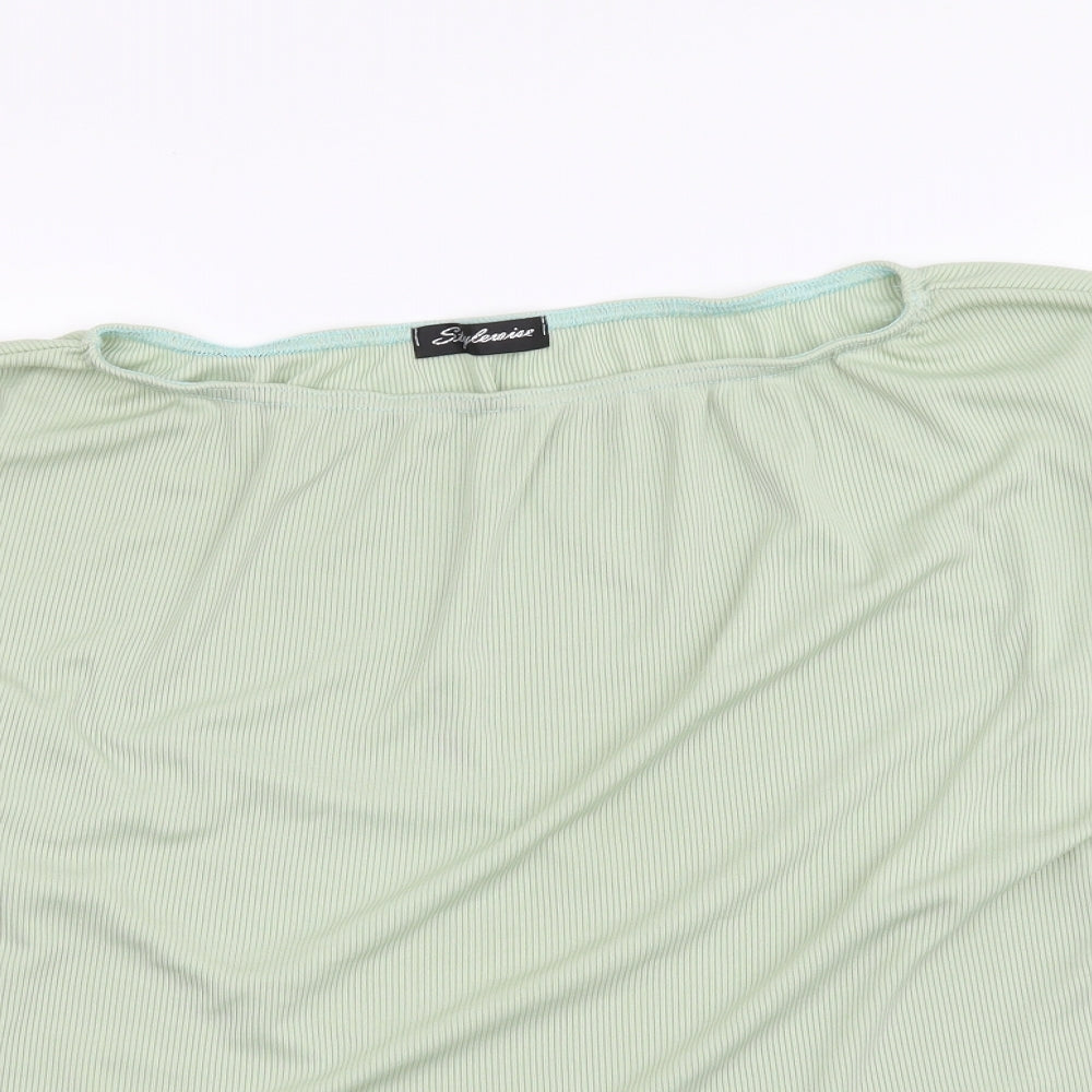 Womens Green Polyester Cropped Blouse Size 8 Square Neck