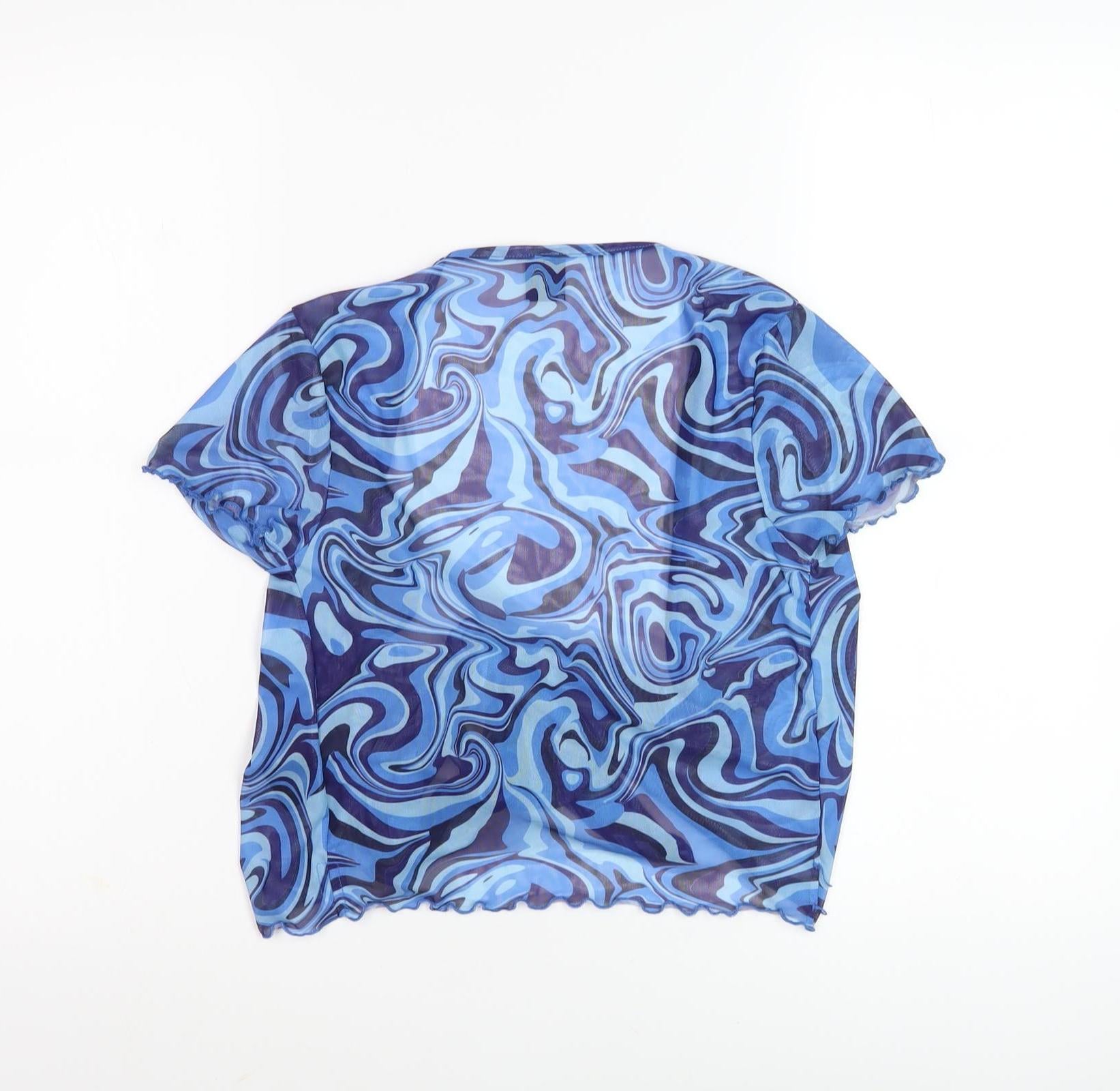 Stylish Women's Blue Geometric Wrap Blouse - Size 8