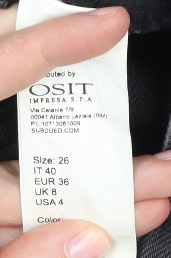 These exquisite Subdued women's jeans are perfect for fashion-forward individuals looking to add a timeless piece to their wardrobe. Crafted from a stretchable denim blend of 98% cotton and 2% elastane, these jeans are designed for comfort and durability. The sleek black colour offers a versatile look that pairs effortlessly with a variety of tops and accessories for any occasion. Featuring a contemporary wide-leg style, these jeans deliver a modern twist to the classic denim look. With a high-rise fit, they provide a flattering silhouette that complements any body type. The unique frayed hem adds a touch of edgy flair, making these jeans stand out from the typical denim. Designed with a standard 5-pocket layout, these jeans provide practical storage without sacrificing style. Ensure comfort with the button closure and machine washable care, making these jeans both practical and stylish. Embrace every season with these stylish black jeans, suitable for autumn, winter, spring, or summer. These jeans maintain an excellent condition, showing no visible signs of wear, ensuring you maintain a chic and polished appearance. With no personalisation or handmade features, these jeans maintain their clean, modern aesthetic. Perfect for those who appreciate quality and style, these jeans offer lasting appeal and comfort. Add these Subdued black wide-leg jeans to your collection and enjoy a staple piece that elevates your wardrobe, offering endless style possibilities for everyday chic.