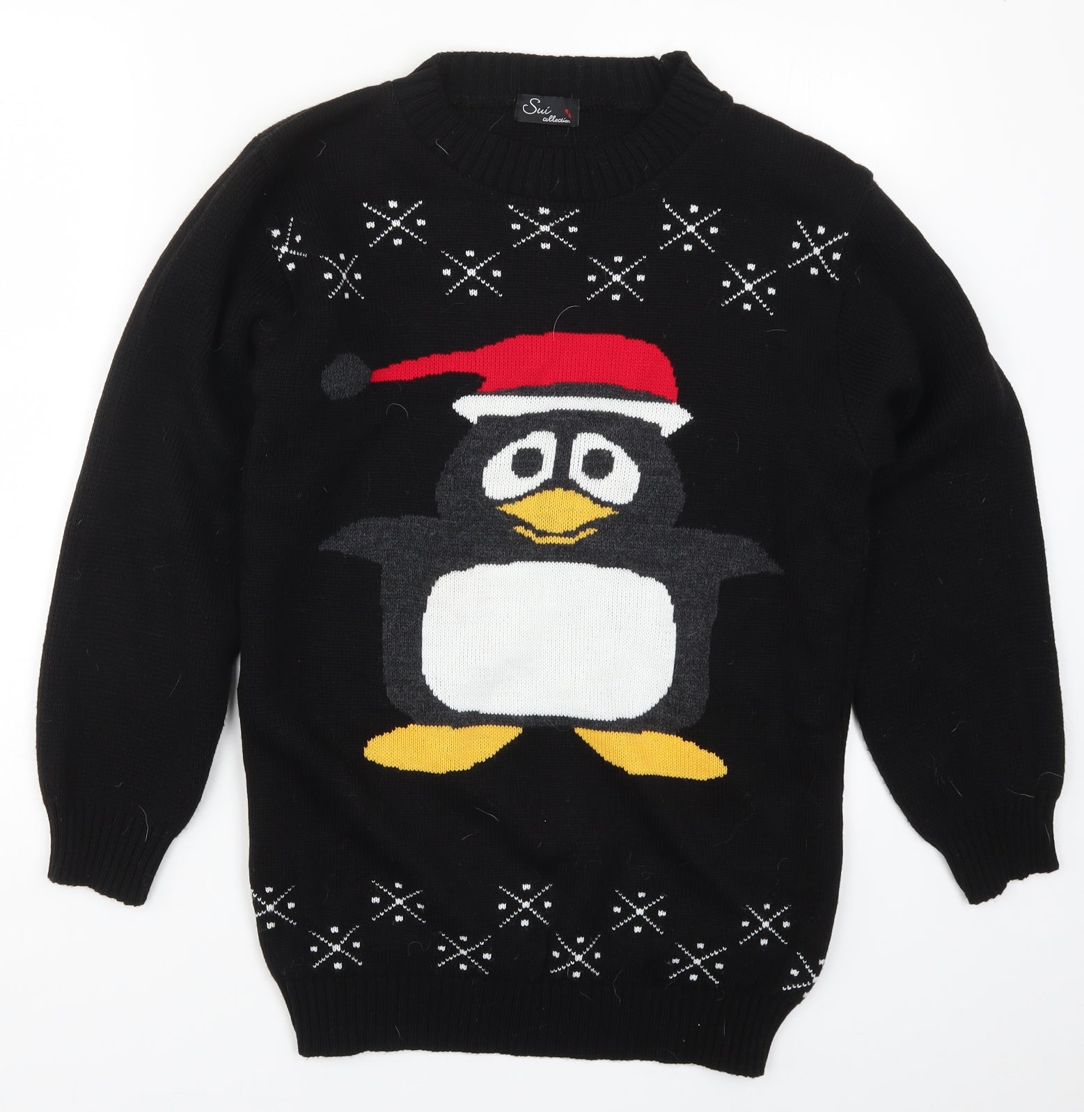 Mens Black Knit Pullover Jumper Size S - Christmas Penguin