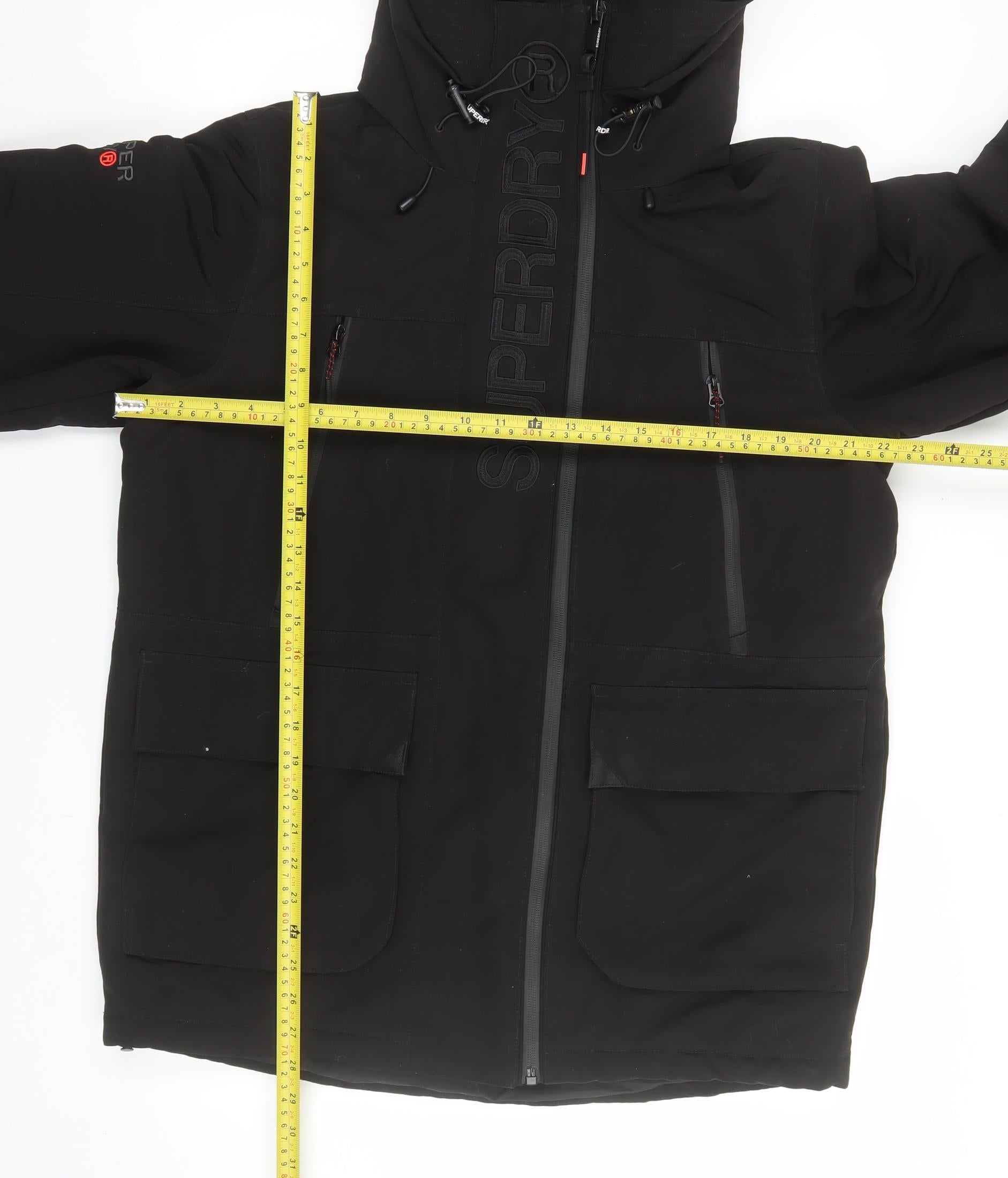 Stay warm and stylish with this Superdry Men’s Windcheater Puffer Jacket, a high-performance outerwear choice perfect for colder months. Designed in sleek black, it combines practicality and modern streetwear appeal. The jacket features Superdry’s signature detailing with bold branding across the chest and sleeve, offering a distinctive yet versatile look that complements any casual or sporty outfit.Crafted from 100% recycled polyester, the jacket’s softshell outer ensures durability and protection against the elements, while the mid-weight puffer design provides outstanding insulation and warmth. The full zip closure offers adjustable comfort, complemented by a high stand-up collar and hood that shield you from wind and rain. Two spacious lower pockets with flap closures and zippered upper chest pockets make it ideal for daily use, offering both style and practicality.Fully lined with recycled polyester, this jacket promises long-lasting wear and comfort. It includes windproof and water-resistant features, making it perfect for walking, hiking, or outdoor adventures through winter and autumn. Its classic regular fit and mid-length cut provide effortless layering over shirts or jumpers without compromising on movement.The piece is in excellent used condition, showing light wear but no flaws or damage. A functional addition to your casual or travel wardrobe, this Superdry Windcheater is made for those who value both performance and fashion. Whether you’re heading to the city or the countryside, this jacket is reliable, warm, and built with sustainable materials. Priced competitively, it offers an eco-conscious choice without sacrificing quality or design excellence — the perfect companion for windy and cold conditions.