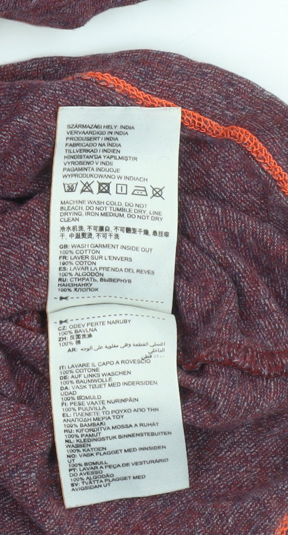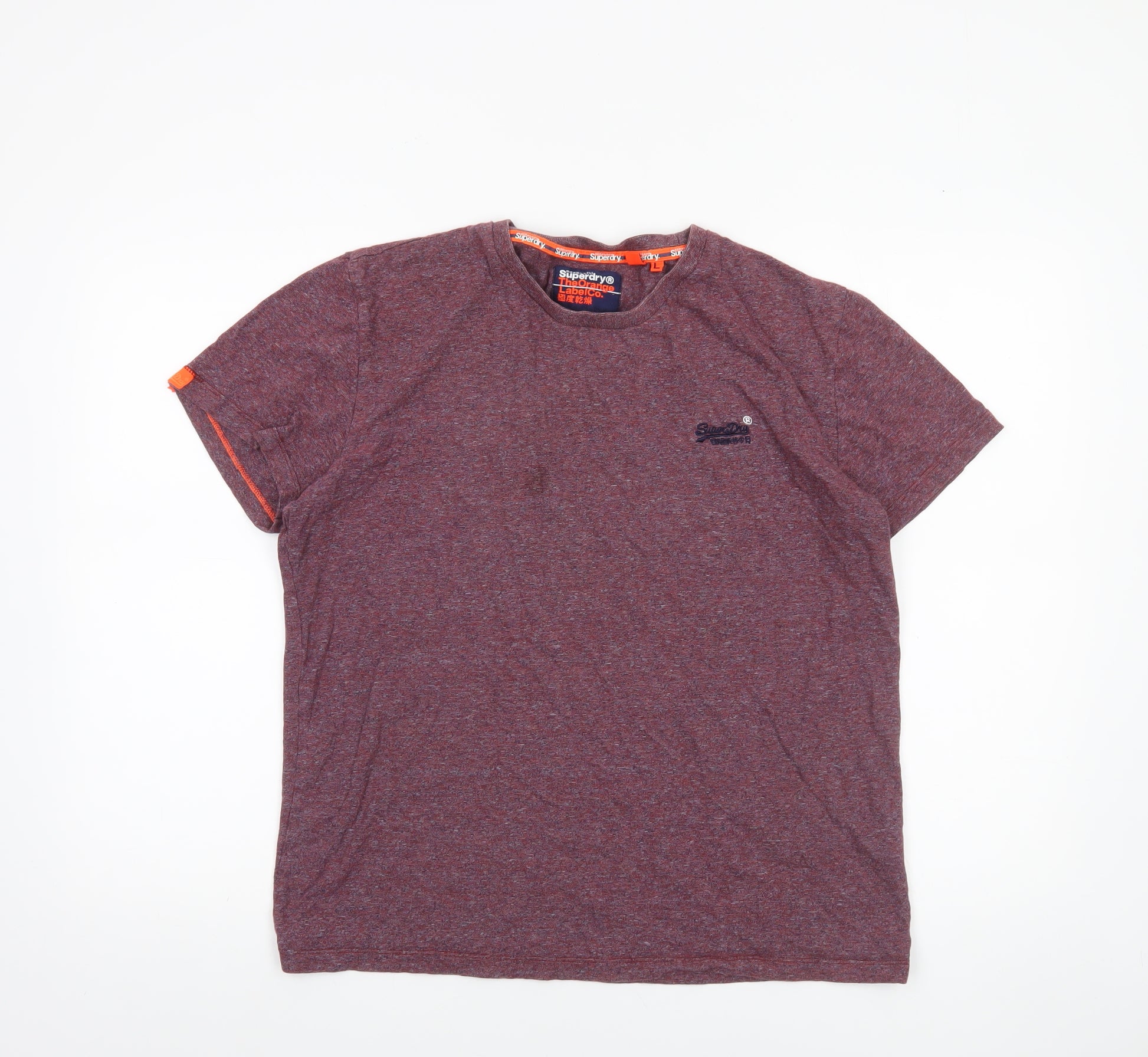 This Superdry Men’s Red Crew Neck T-Shirt from The Orange Label Co. collection is a versatile and stylish staple for every casual wardrobe. Made from 100% soft cotton, this tee offers the perfect balance between comfort and breathability, making it suitable for everyday wear throughout the warmer months. The fabric feels lightweight yet durable, ensuring long-lasting quality that maintains its shape with ease. Designed in a rich marled red tone with a subtle textured finish, it gives off an effortlessly athletic and relaxed look. The front features the iconic Superdry logo embroidered on the chest, adding a recognisable brand accent without being overpowering. The short sleeves and crew neckline are classic and flattering, ideal for pairing with jeans, shorts, or casual trousers for a laid-back outfit. Its regular fit provides an easy, comfortable silhouette suitable for a wide range of body types. Whether you’re out on a casual day, relaxing at home, or planning a weekend outing, this T-shirt ensures an adaptable fit that looks smart and feels great. The clean, minimal design ensures it layers well under jackets, hoodies, or overshirts, providing style versatility season after season. Made to Superdry’s high-quality standards, it combines understated design with everyday practicality. This item is in very good condition, showing minor signs of gentle wear near the chest area but still fresh and ready for continued use. With its soft cotton construction, timeless silhouette, and signature detailing, this tee is an excellent choice for men who value comfort and authenticity in their casual wear. A superb blend of quality and simplicity, it remains a wardrobe essential that never goes out of style.