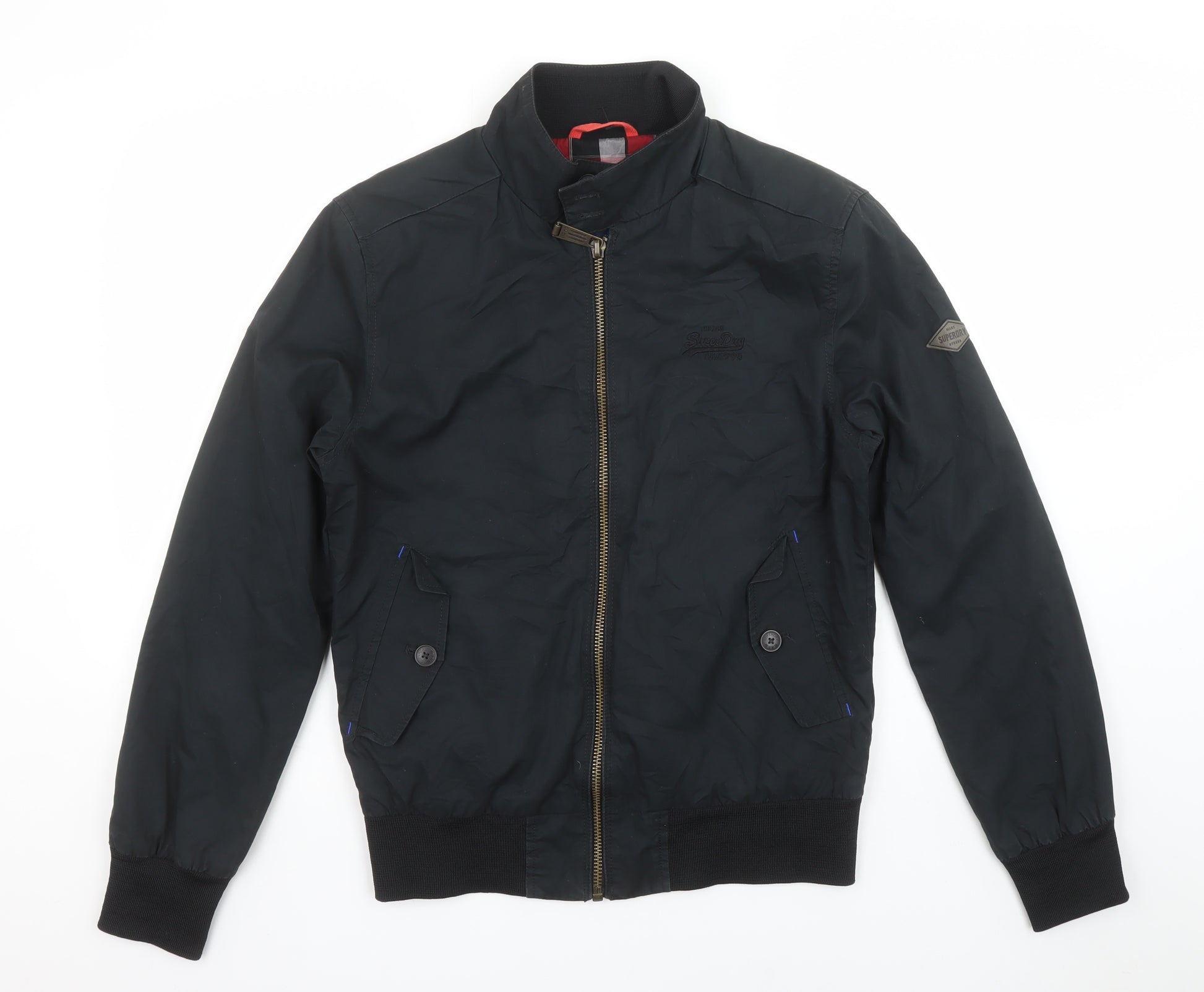 Men's Black Bomber Jacket Size M Polyester Lined Zip Up