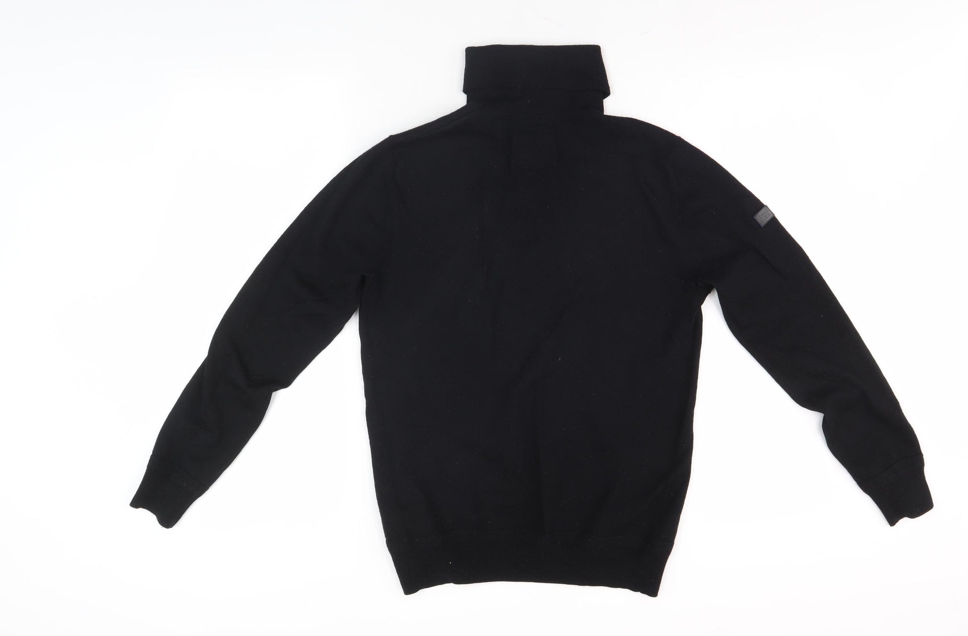 Elevate your wardrobe with this classic Superdry Men's Black Merino Wool Pullover Jumper, perfect for those chilly autumn and winter days. Designed for casual wear, this medium-sized jumper offers a regular fit, ensuring comfort and style are at the forefront. The high neck adds both warmth and a fashionable touch, making it suitable for both relaxed and slightly more formal occasions. Crafted from premium Merino Wool, this jumper provides exceptional softness and insulation, while its sleek black colour complements any outfit effortlessly. With long sleeves and a minimalist, no-pattern design, it strikes the perfect balance between traditional and contemporary styles. Whether paired with jeans for a casual day out or smart trousers for a dinner event, it adapts to any setting with ease. The hand wash only care instruction ensures that the luxurious material retains its quality and appearance over time. Perfect for gifting or as a staple in your own collection, this jumper promises both durability and timeless appeal. Don't miss out on adding this versatile piece from Superdry to your wardrobe!