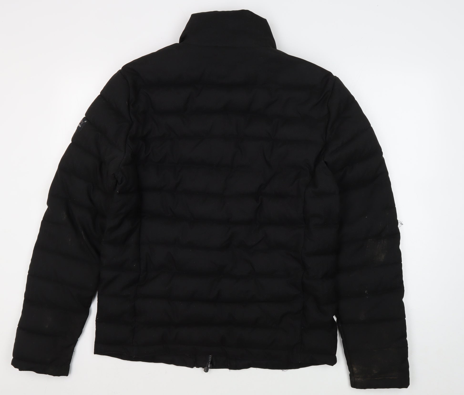 Introducing the Superdry Men's Black Puffer Jacket in size L, a quintessential piece for your winter wardrobe. Crafted from durable polyester, this jacket promises warmth with its dense insulation, ensuring you conquer the cold with style. The jet-black hue offers versatility, making it a seamless addition to any outfit, whether you're heading out for a casual outing or commuting through brisk winter mornings.Designed with a modern, mid-length cut, this puffer jacket features a stand-up collar for additional neck protection against the elements. The quilted fabric type not only adds a touch of sophistication but also reinforces the jacket's insulating properties, keeping you comfortably snug. Convenience meets style with a full zip closure, allowing for easy wearability and removal, while the zipped pockets provide secure storage for your essentials.Ideal for those seeking both functionality and fashion, this jacket is machine washable, promising low maintenance. The logo accents add a subtle designer touch, echoing the brand’s commitment to quality and style. Despite its light signs of surface dust, the jacket remains in excellent condition, poised to offer service for seasons to come.Seize the opportunity to own this versatile Superdry puffer jacket at an unbeatable price. It's more than just a coat—it's a statement of casual elegance and practical prowess. Perfect for any man looking to blend urban flair with practical functionality, this jacket assures both warmth and style in equal measure.