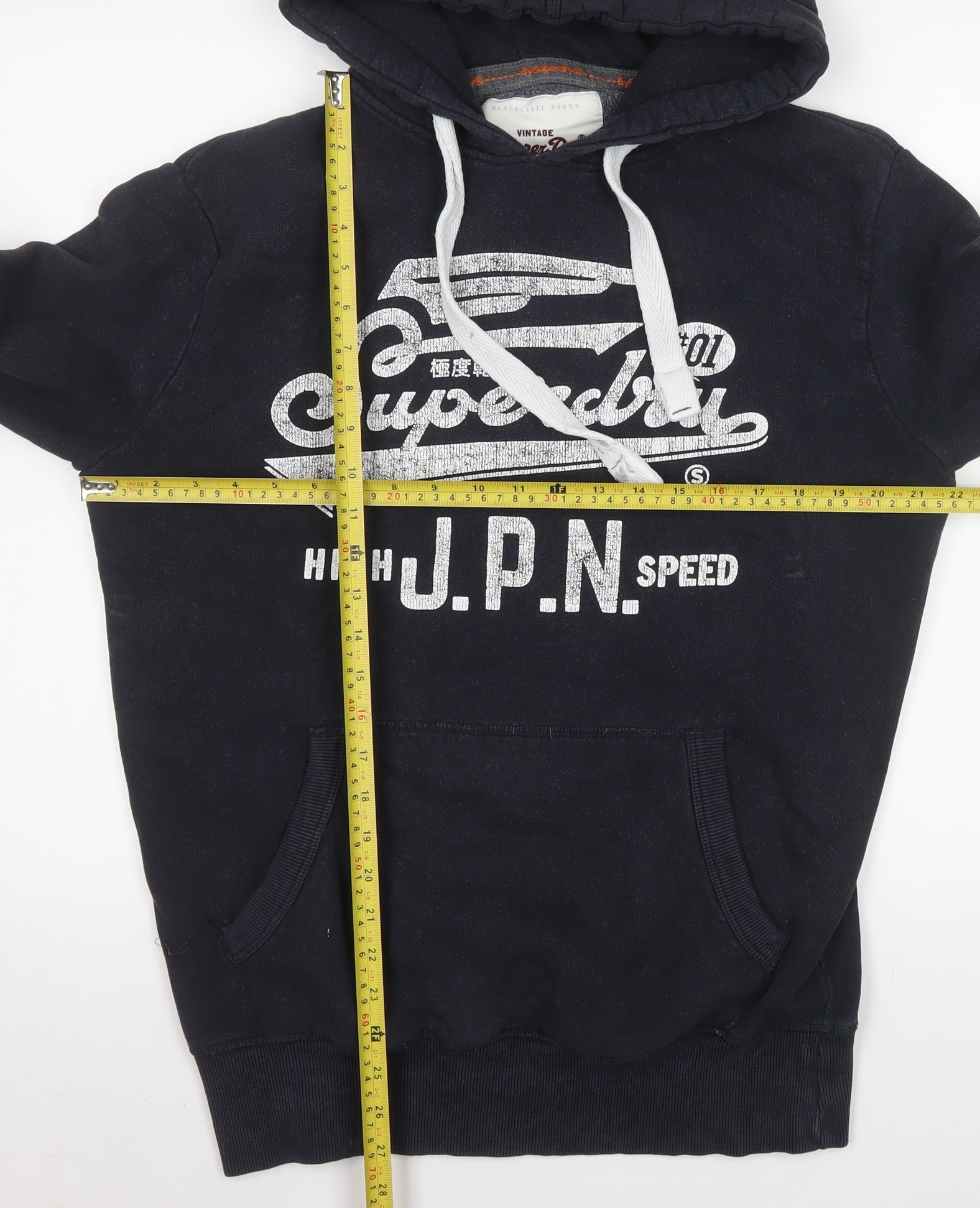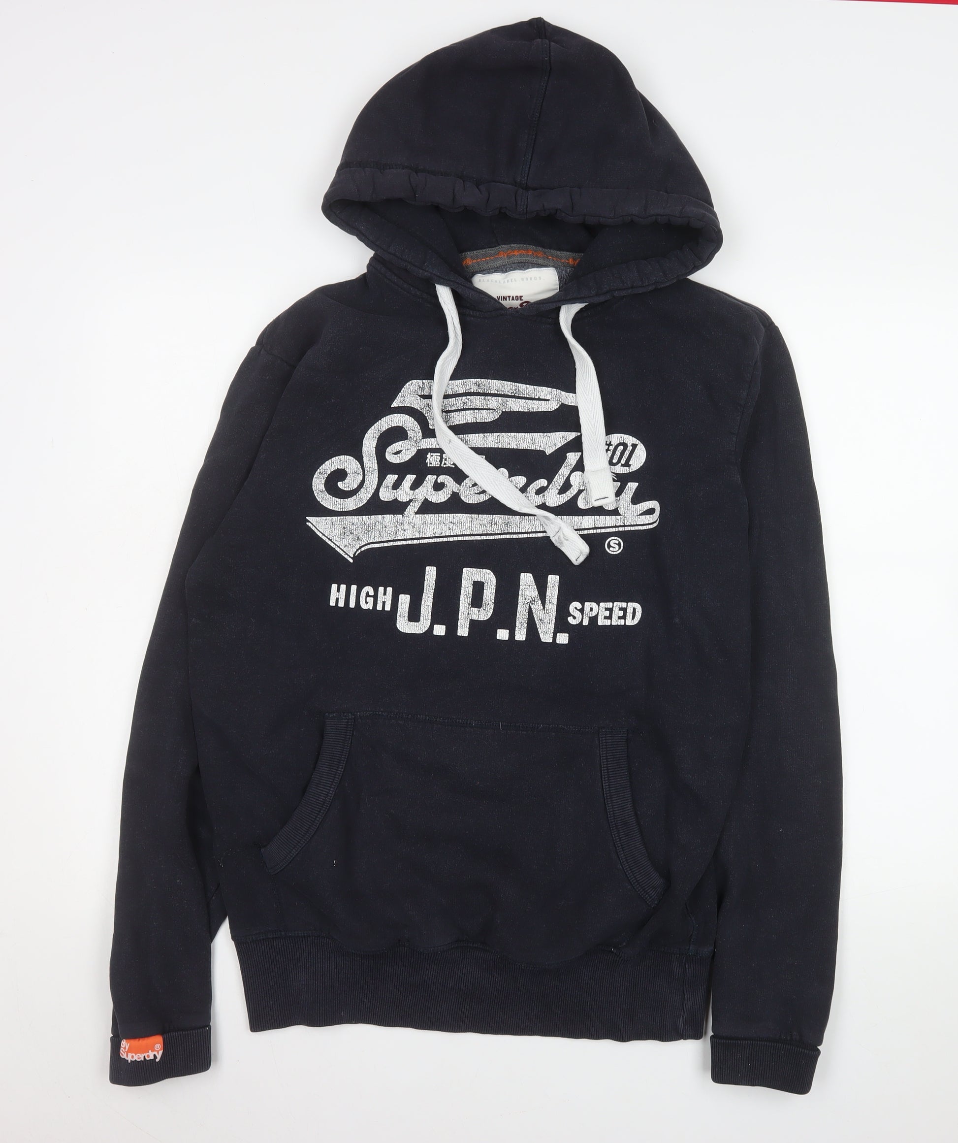 Step out in effortless style and warmth with this Superdry Men's Black Pullover Hoodie in size Medium. Crafted from a premium fleece blend of 85% cotton and 15% polyester, this hoodie delivers exceptional softness, durability, and comfort for everyday wear. The pullover style is simple yet iconic, featuring Superdry’s signature vintage-inspired logo print across the chest. With a classic drawstring hood and a cosy kangaroo front pocket, this piece provides both warmth and streetwear appeal, perfect for layering throughout autumn, winter, and spring. The deep black colourway and bold white Superdry branding give it a versatile edge that pairs easily with jeans or joggers. Designed for a regular fit, it offers unrestricted movement and a casual silhouette ideal for both lounging and heading out. The fleece fabric type adds warmth without bulk, while the ribbed cuffs and hem ensure a snug fit that retains comfort through repeated wear. This hoodie includes popular features like its hooded neckline, kangaroo pocket, and eye-catching logo accents. Designed with all-season practicality in mind, it’s machine washable for easy care. The piece is in very good pre-owned condition, showing only light wear around the cuffs. Whether you’re relaxing on a weekend, layering up for a walk, or capturing that sporty college aesthetic, this Superdry hoodie is an ideal pick. Its laid-back feel and premium construction make it a go-to essential for any casual wardrobe — stylish, comfortable, and built to last. Ideal for men who appreciate vintage detail and modern craftsmanship in every stitch.