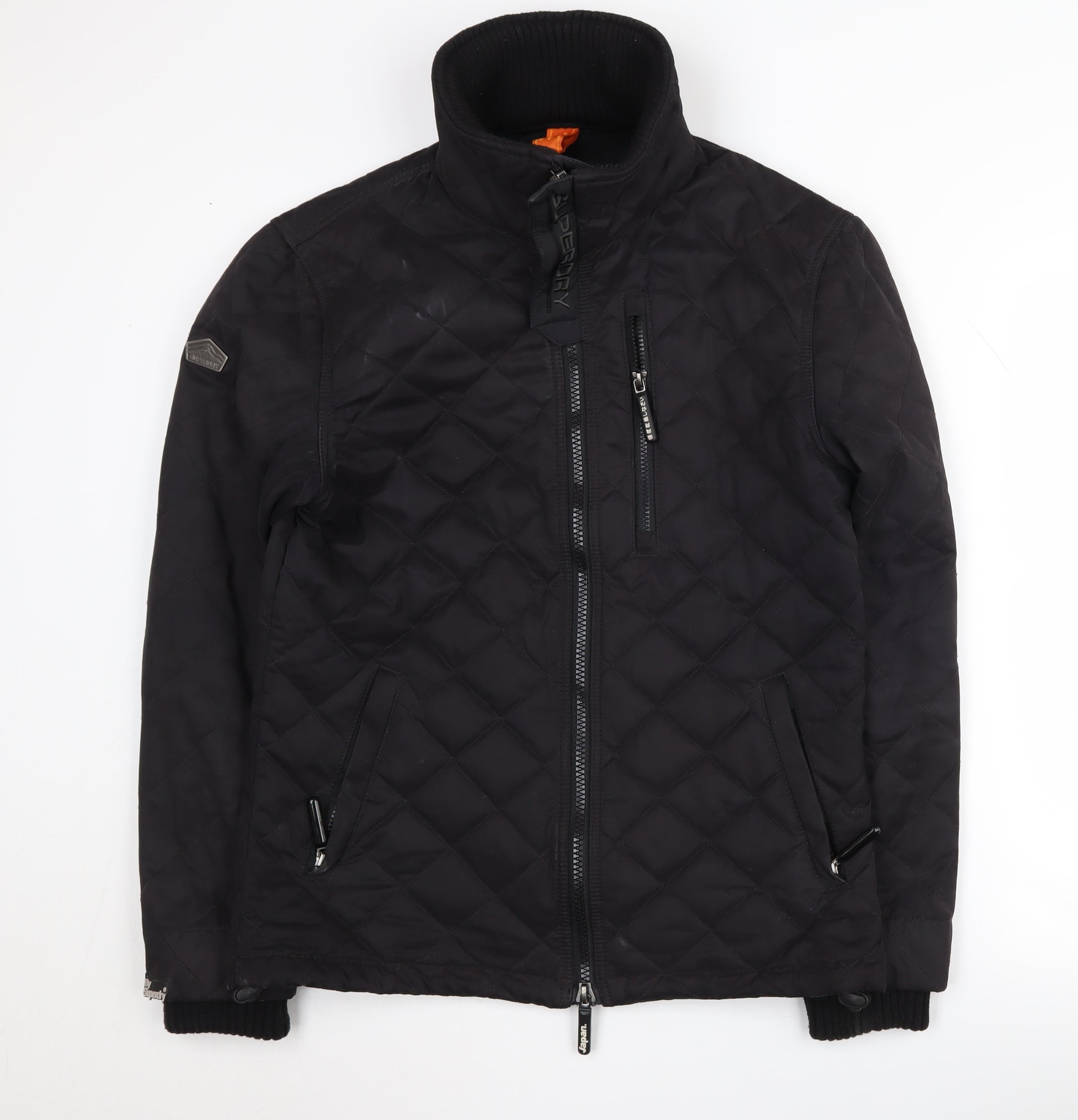 Step out in style with this Superdry Men's Black Quilted Windbreaker Jacket, perfect for those who appreciate both fashion and function. Made with a blend of polyester and cotton, this jacket offers a comfortable fit with a stylish quilted design. Its classic black colour ensures versatile wear for any casual occasion, while the stand-up collar adds a touch of modern flair. The jacket features a full zip closure and multiple zipped pockets for practicality, making it ideal for autumn and spring outings. Designed with the outdoorsman in mind, this lightweight windbreaker is perfect for hiking or simply enjoying a casual day out. Embodying Superdry’s commitment to quality and style, this jacket is suitable for men who value comfort and contemporary design. With distinct logo accents and a regular fit, it's easy to pair with various outfits, ensuring you not only feel great but look great as well.