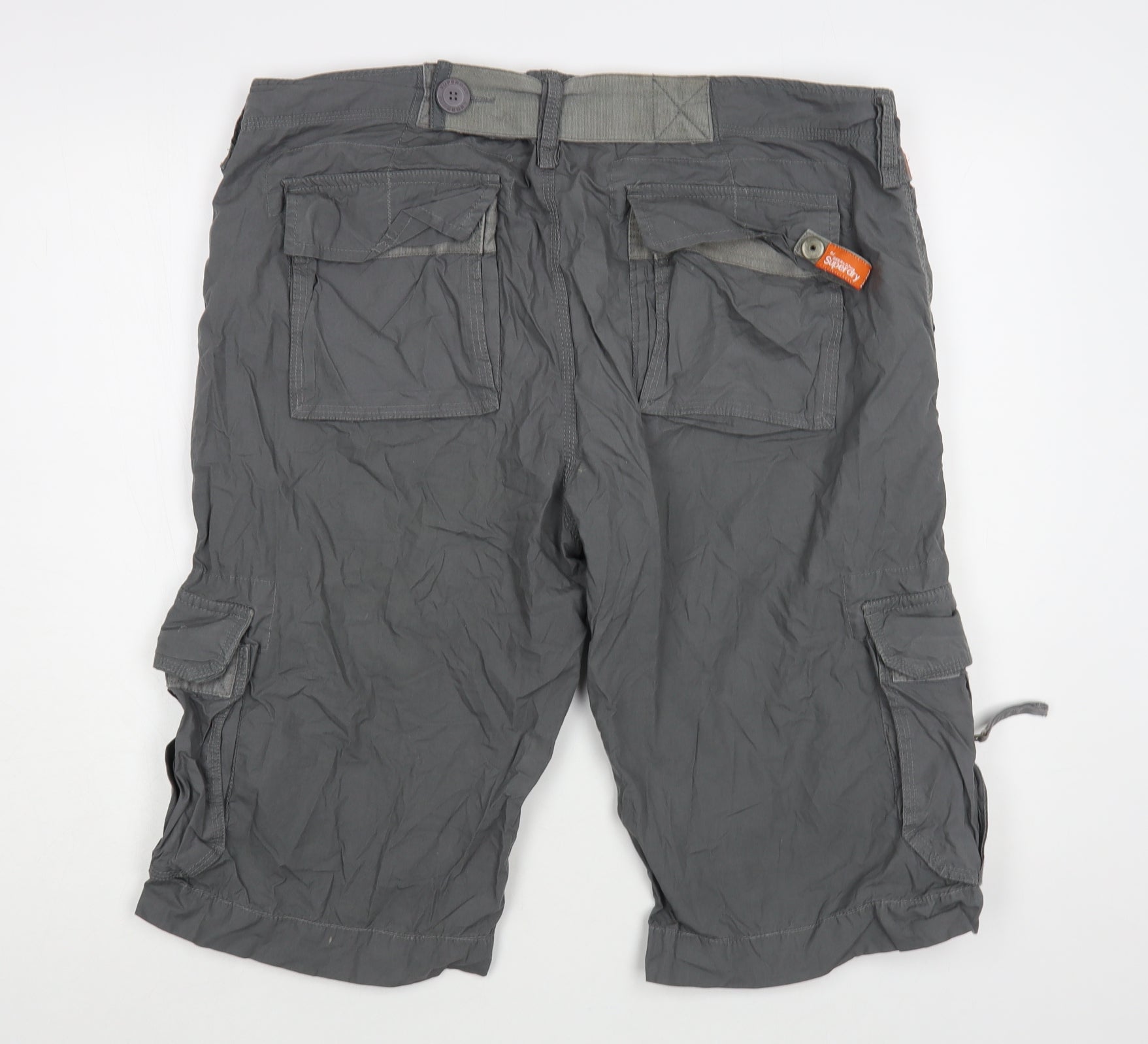 Mens Grey Cotton Cargo Shorts Size XL L15 in Regular Button