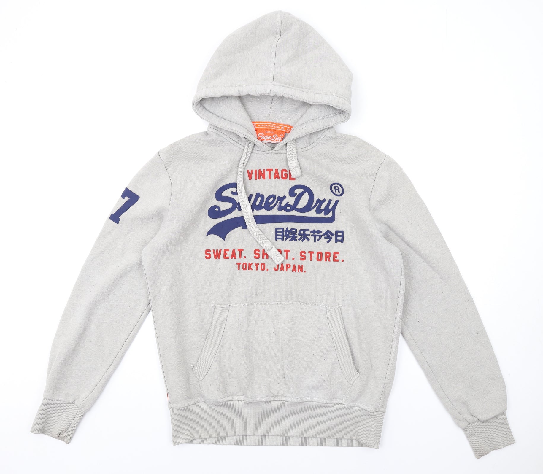 Superdry Mens Blue XL Pullover Hoodie Graphic Print Fleece