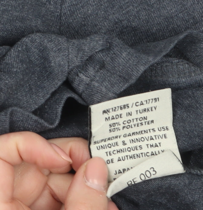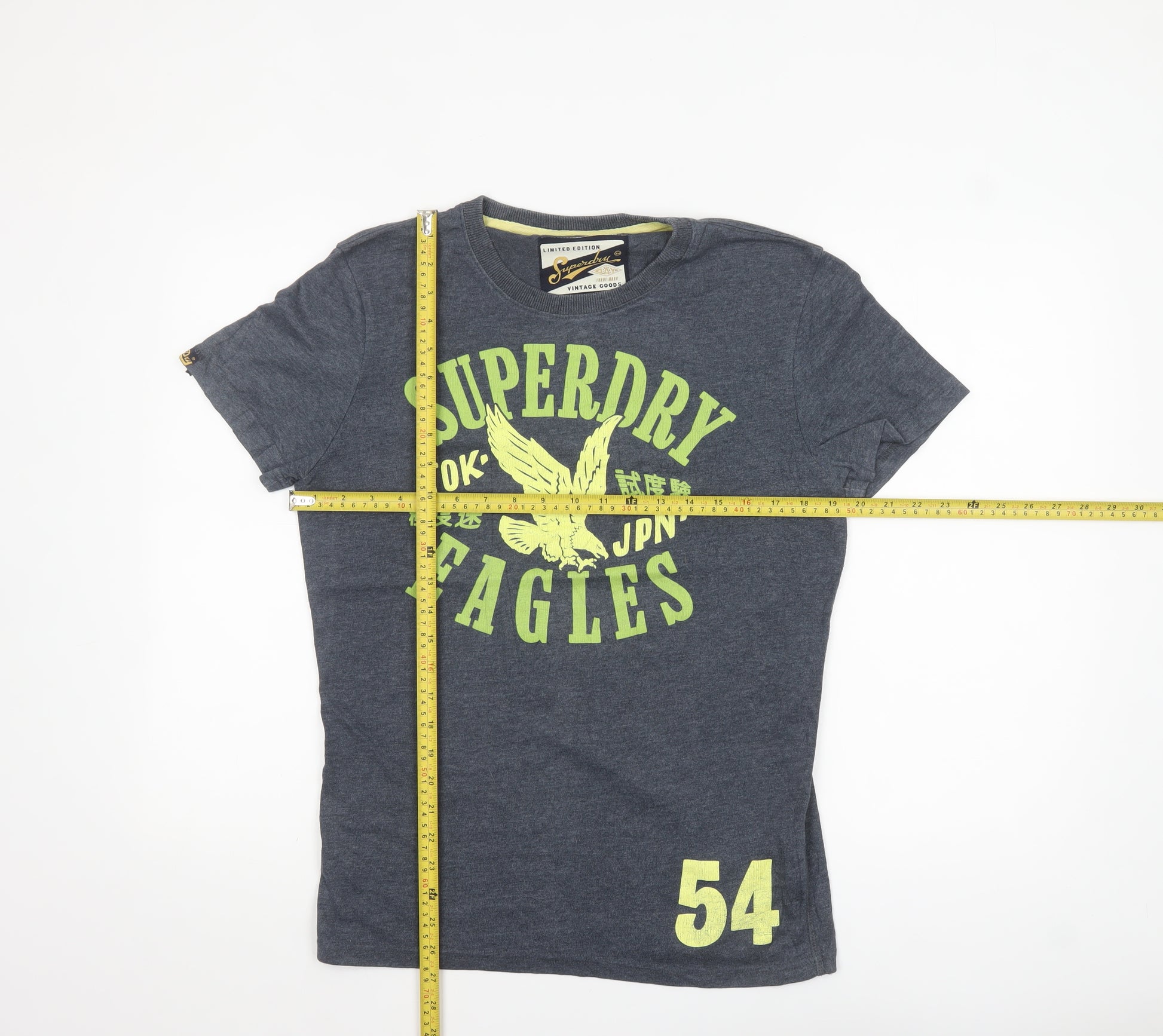 Add an effortlessly cool edge to your casual wardrobe with this Superdry Men's Grey Eagle Graphic Crew Neck T-Shirt in size M. Designed in the brand's signature vintage-inspired style, this piece features bold lime green lettering and an eagle motif emblazoned across the chest, giving it an unmistakable Superdry aesthetic. Crafted from a quality blend of 50% cotton and 50% polyester, the shirt offers a soft, breathable feel with just the right amount of structure to maintain a flattering fit. The lightweight jersey fabric makes it an ideal choice for spring and summer, while the classic crew neckline and short sleeves ensure lasting comfort throughout the day. Finished in a versatile dark grey hue, this T-shirt pairs easily with jeans, chinos, or casual shorts for a laid-back yet stylish look. The durable material and double-stitched hems showcase the premium craftsmanship Superdry is known for, while the vintage '54' print at the hem adds a touch of individuality. Perfect for off-duty days, holidays, or relaxed social outings, this tee captures contemporary comfort mixed with retro sports charm. This pre-owned item is in very good condition, showing only minimal signs of wear with no notable stains, tears, or blemishes. With its iconic Superdry branding and timeless appeal, it’s a must-have addition for anyone who values everyday style with character. Whether you’re heading to the gym, meeting mates, or lounging at home, this T-shirt delivers all-day comfort and a refined casual image.
