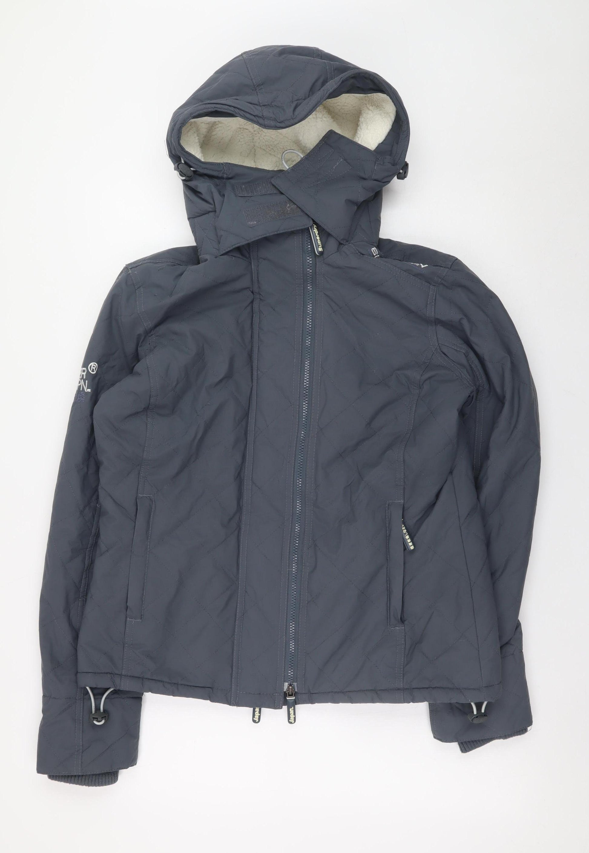 Stay warm and stylish with this Superdry Original Windcheater Japan men’s jacket in a versatile grey tone. Designed to offer reliable protection in challenging weather, this mid-length jacket combines contemporary style with outdoor-ready functionality. Constructed from 100% nylon on the outer shell, it provides durable, water-resistant, and windproof performance that keeps you comfortable against the elements. The high collar, full zip fastening, and adjustable hood add further defence from wind and rain, making it an ideal choice for hiking, walking, or general outdoor wear.The interior fleece-style polyester lining ensures a layer of soft warmth while maintaining breathability, ensuring all-day comfort even in cooler conditions. The jacket’s regular fit allows ease of movement and layering over your everyday clothing without feeling bulky. Practical zipped pockets provide convenient storage for small essentials, and the adjustable hem and cuffs let you tailor the fit perfectly to your needs.A signature embroidered Superdry logo on the sleeve adds a touch of quality branding, highlighting its authentic urban-outdoor design heritage. This piece offers a balanced combination of rugged utility and refined style, making it suitable for casual, travel, or sporty occasions throughout autumn, winter, and spring.Perfect for active individuals or as a wardrobe staple for transitional weather, this Superdry men’s grey Windcheater is a reliable go-to jacket that blends comfort, practicality, and fashionable streetwear appeal. In excellent pre-owned condition with minimal signs of use, it’s a great find for anyone looking to upgrade their outerwear collection with a trusted, high-quality brand at an affordable price.