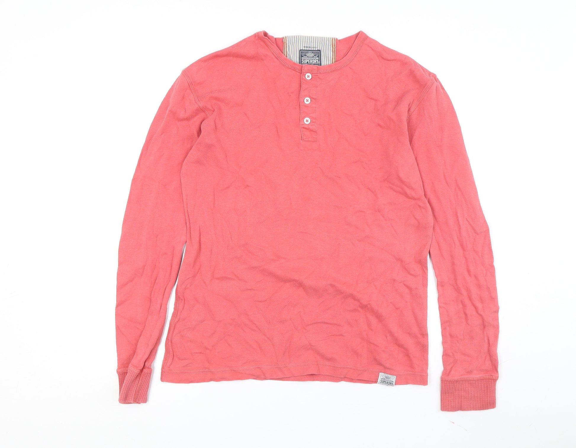 Elevate your casual wardrobe with this classic Superdry Henley T-Shirt, designed for style and comfort. Crafted from high-quality 100% cotton, this medium-sized jersey knit tee offers a soft feel against the skin, ensuring you remain comfortable all day. Its vibrant red colour and long sleeves make it a perfect choice for any season, whether layered under a jacket in winter or worn on cooler summer evenings. Its solid pattern and button accents add a touch of modern sophistication, while the Henley neckline provides a relaxed yet stylish appearance. Designed for regular fit, this Superdry T-shirt is machine washable for easy care. Whether you're dressing for a casual gathering or a day out, this versatile T-shirt is certain to become a staple in your collection. With no visible defects, the condition is excellent, making this an ideal purchase for those seeking quality and timeless style. Don't miss out on adding this essential piece to your wardrobe.